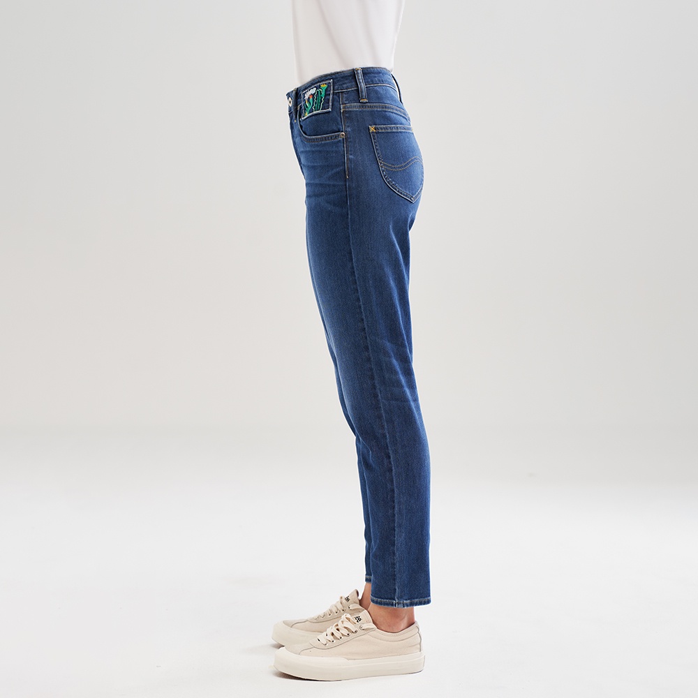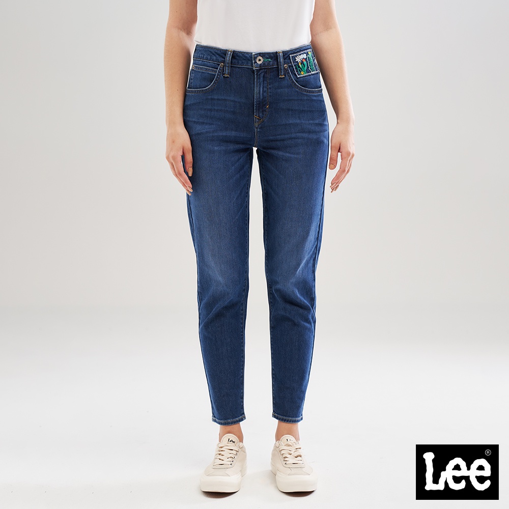 Lee 413 涼感 彈性高腰標準小直筒牛仔褲 女 深藍洗水 LL220135238