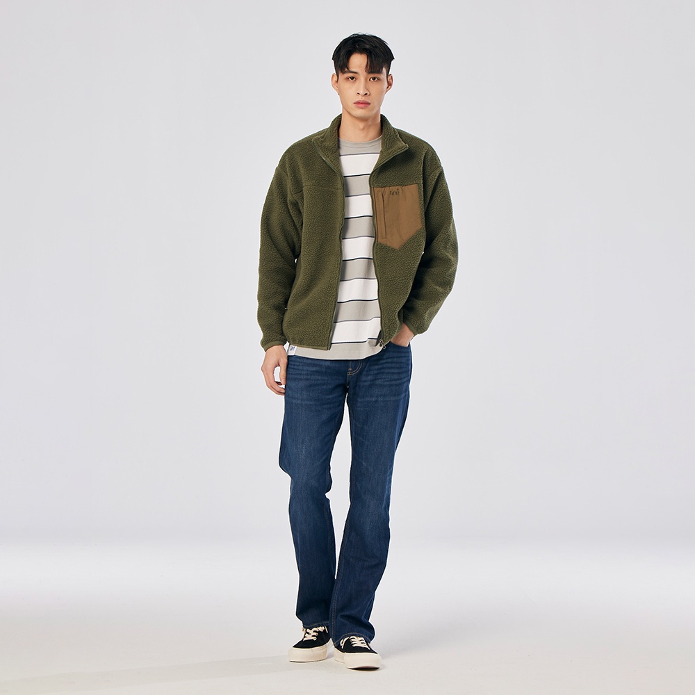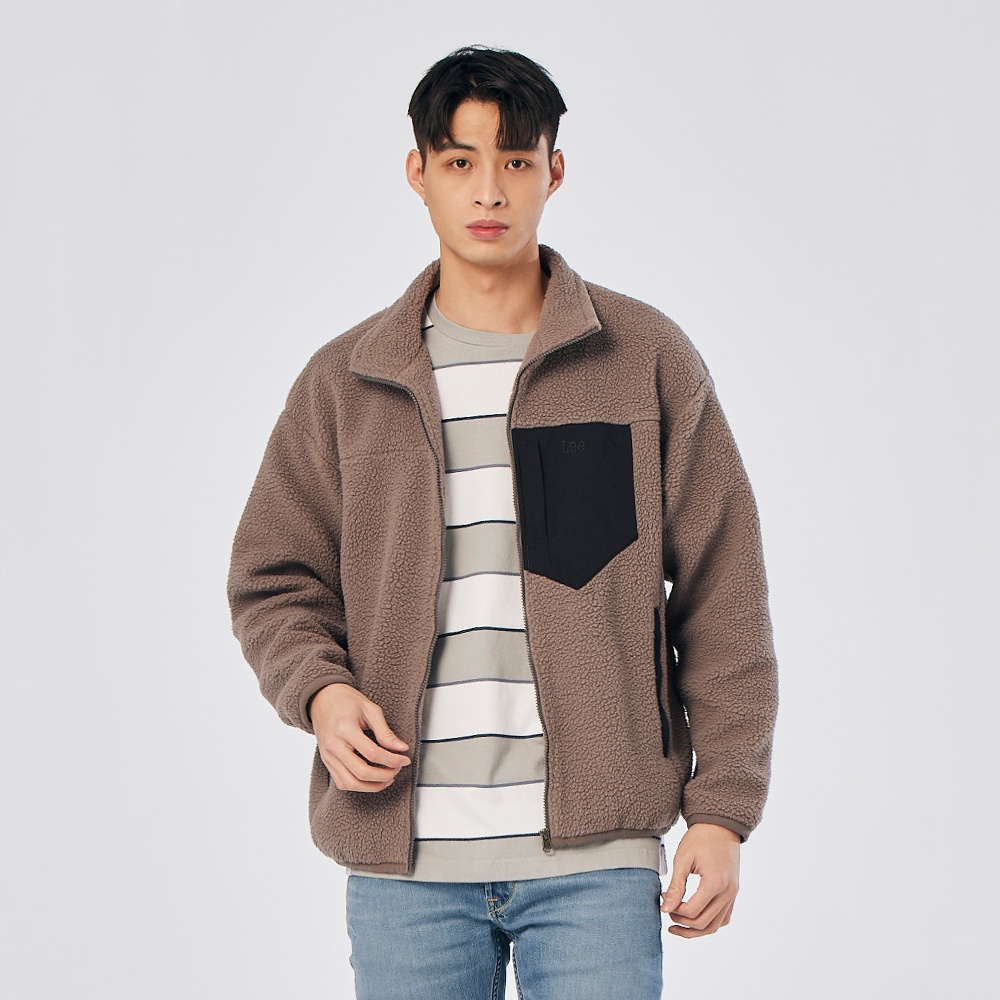 Lee 特色Sherpa立領拉鍊外套 男 Modern 橄欖綠LL220006ANL 古典灰LL220006007