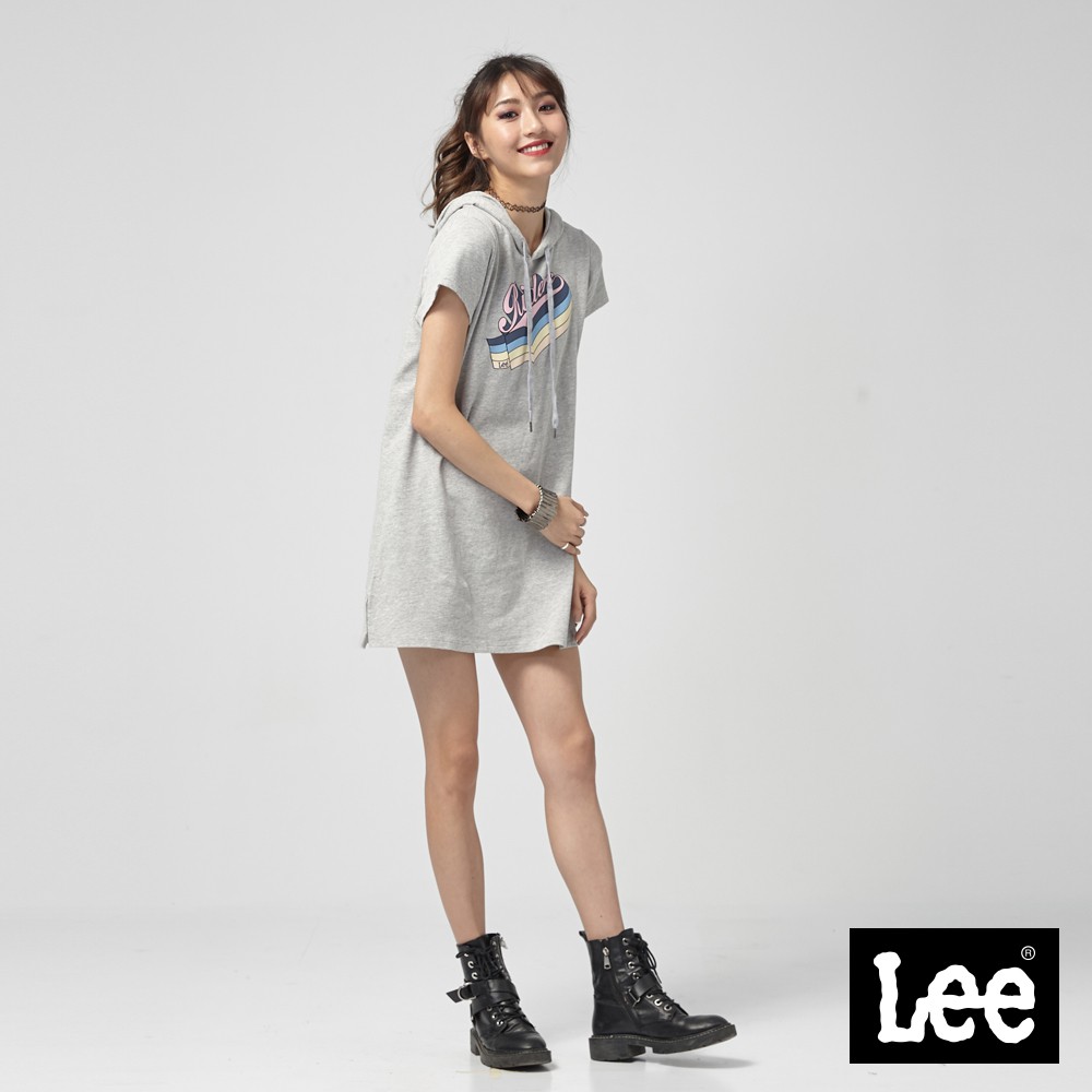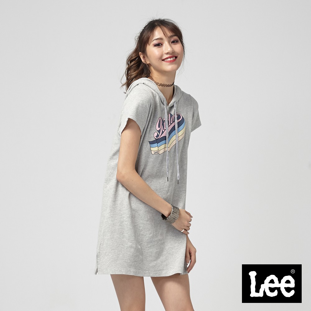 Lee 條紋RIDER文字短袖連帽洋裝 女 灰 Modern LL1901559CG