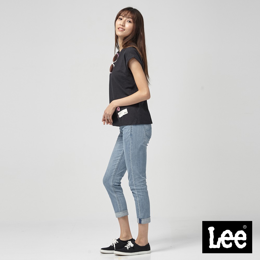 Lee 329 涼感 彈性低腰合身窄管七分牛仔褲 女 淺藍 LL1801257XA