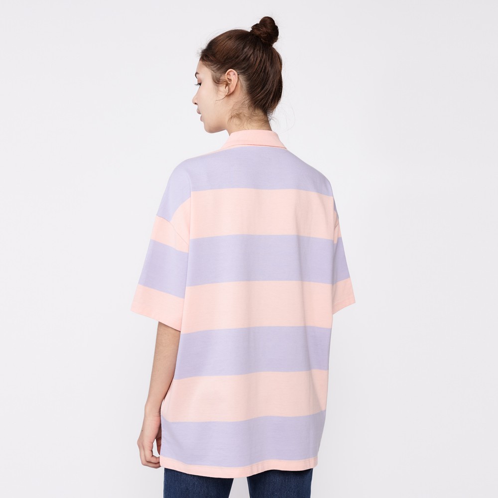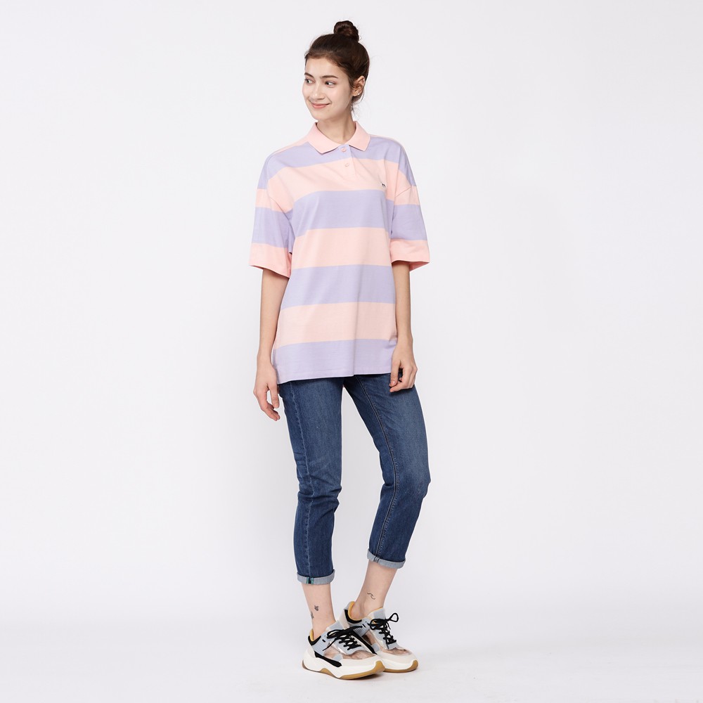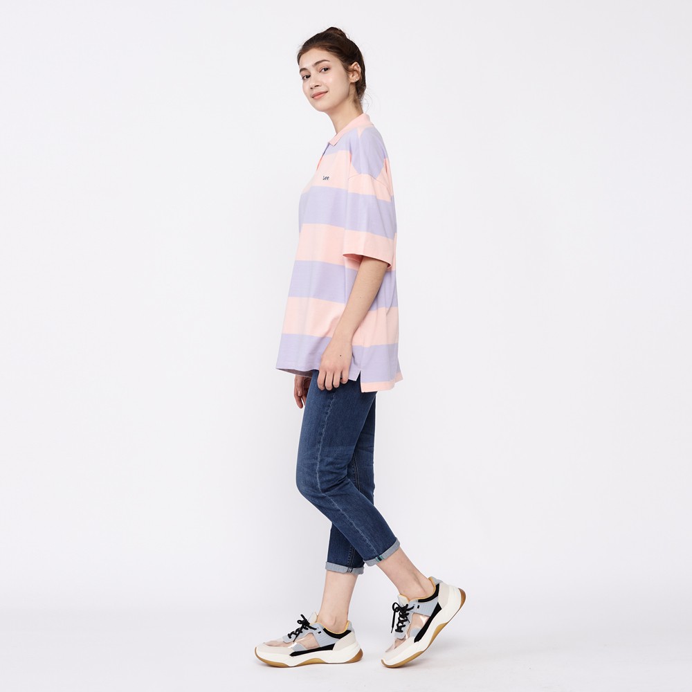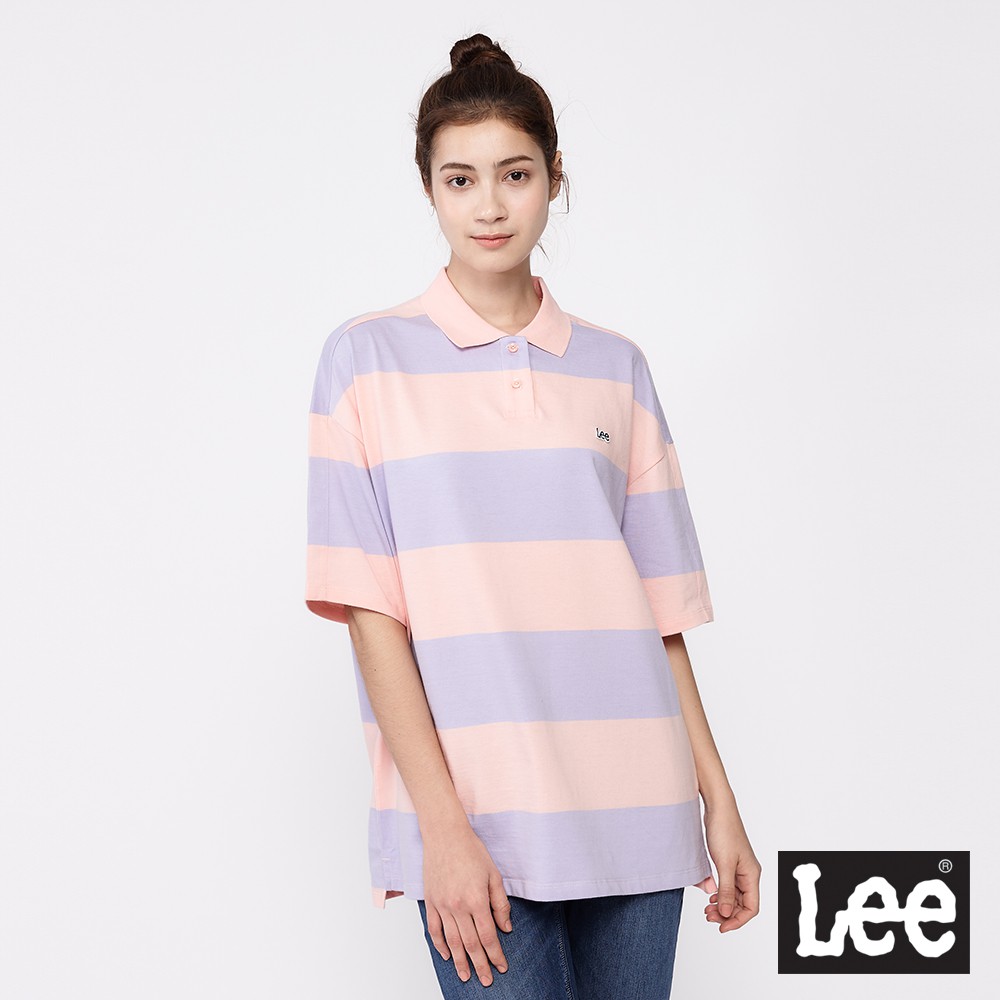 Lee 條紋寬版短袖POLO衫 女 粉橘+紫 男朋友版型 Modern LL2001943XW