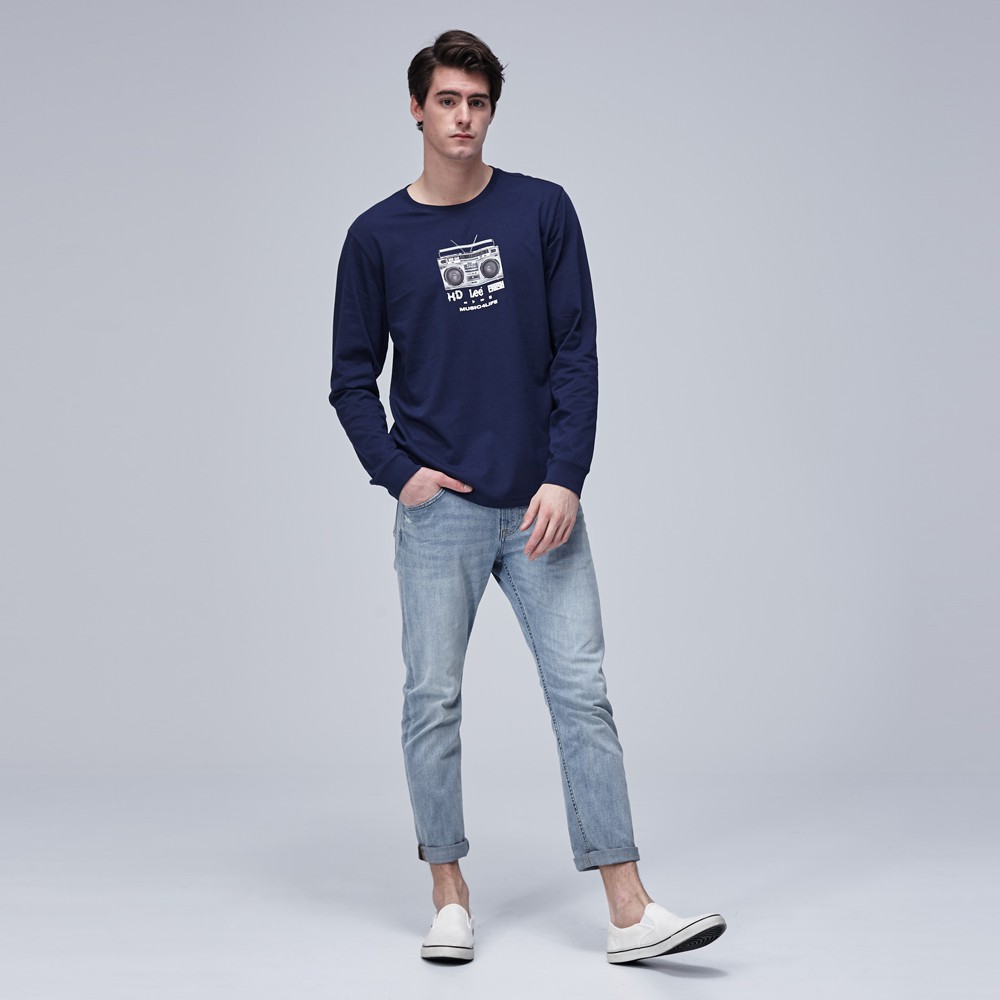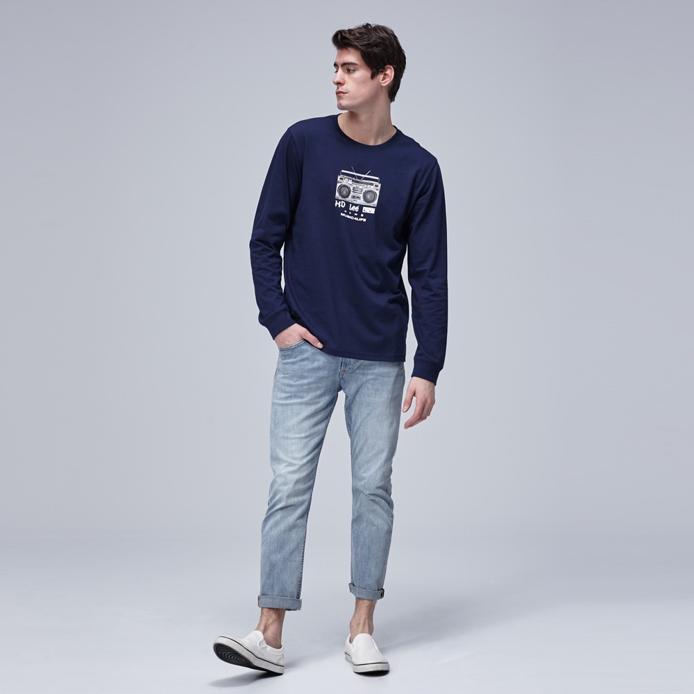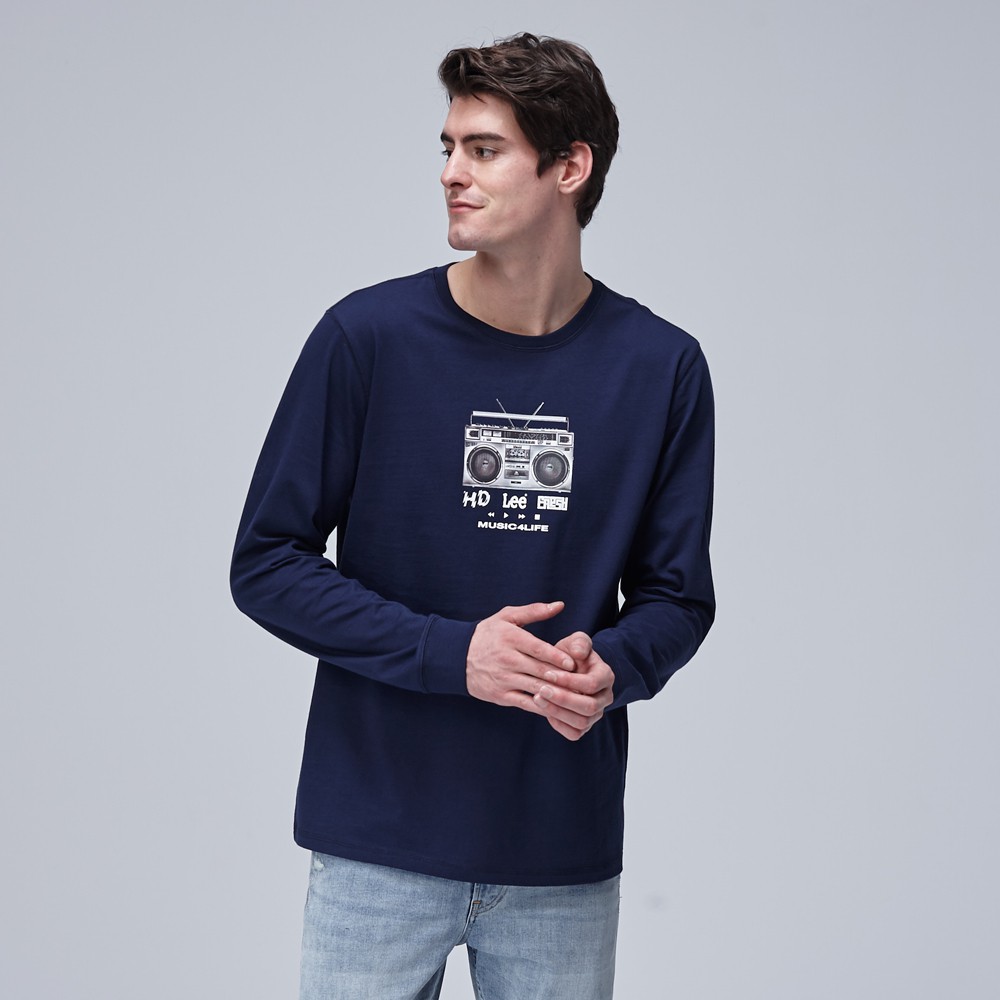 Lee 收音機印花長袖T恤 男 深藍 Modern LL1902829PC