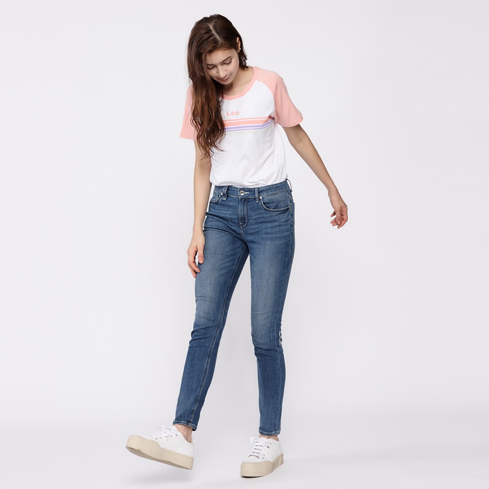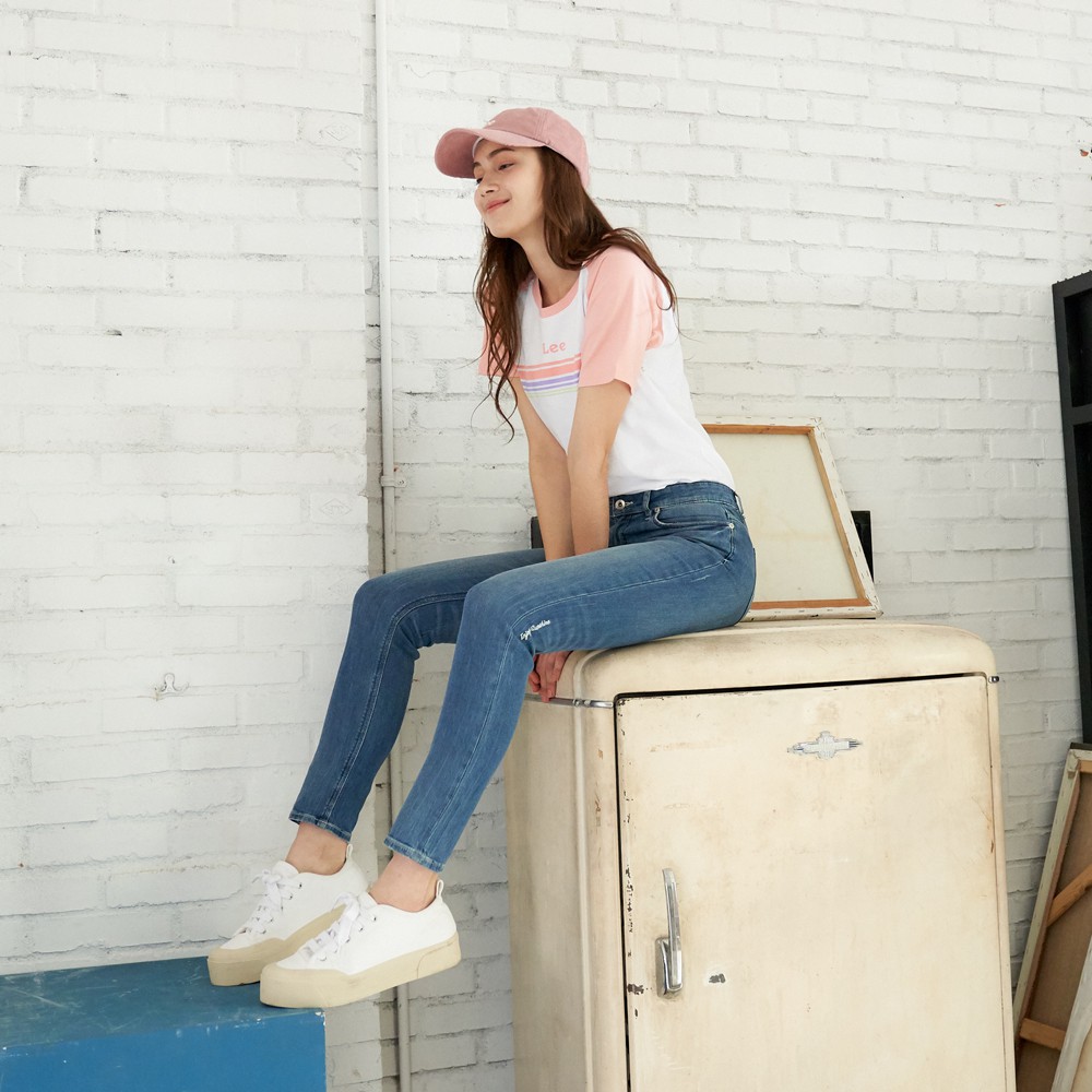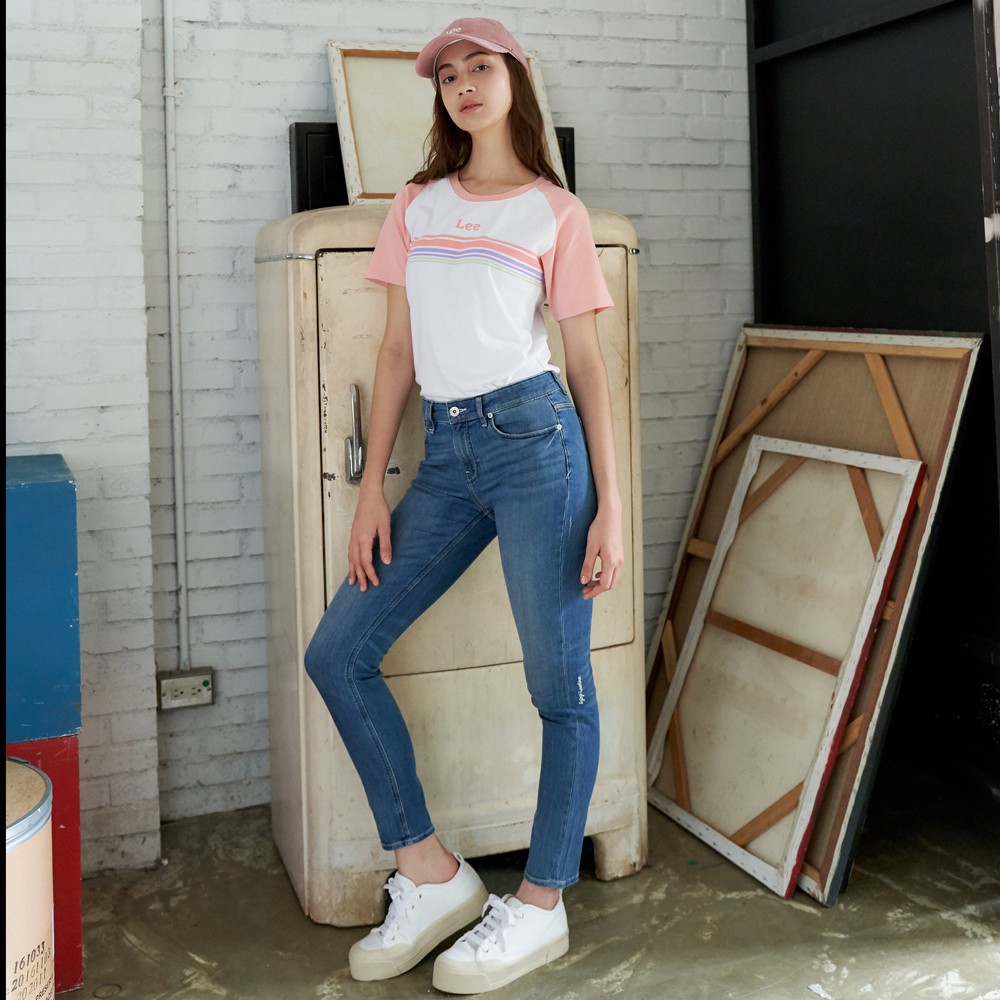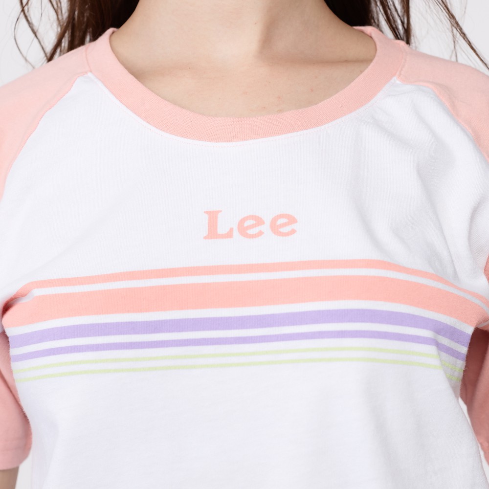 Lee 小Logo粉紅色拉克蘭袖短袖T恤 女 白 Modern LL2001723XW