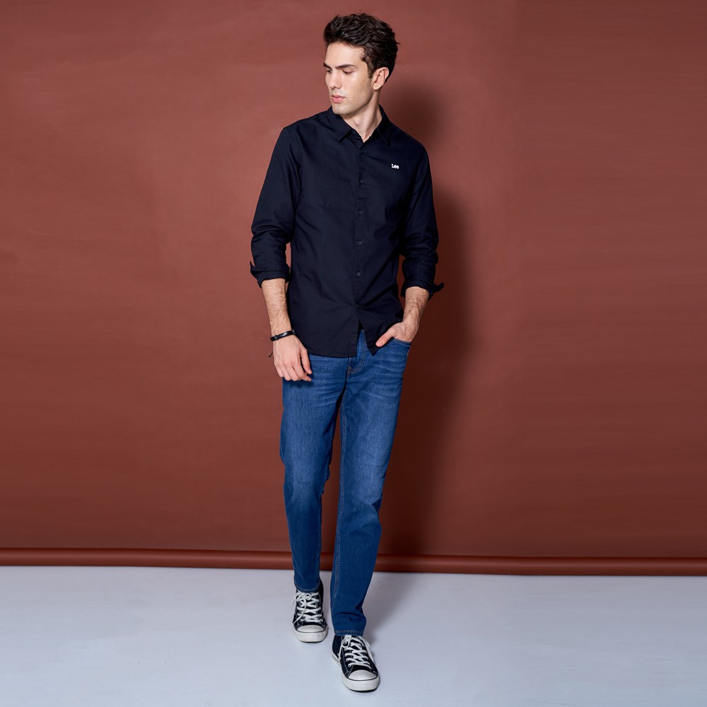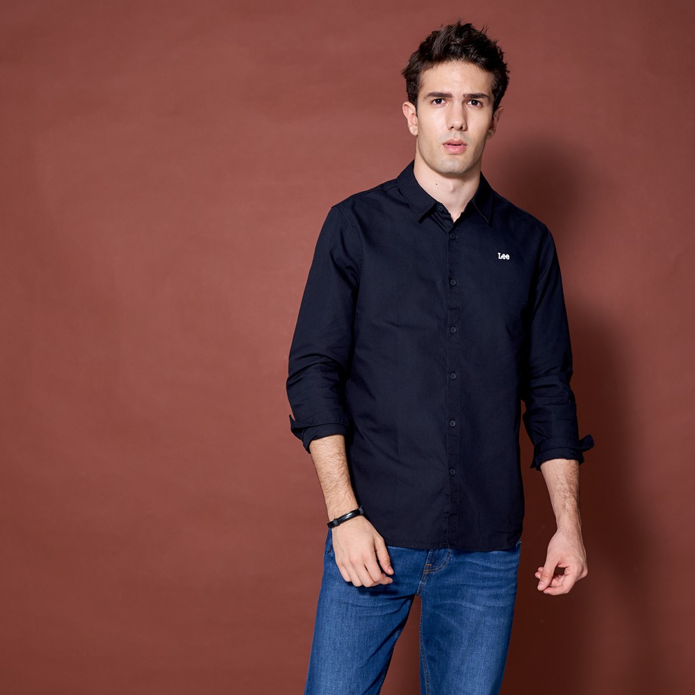 Lee 小logo刺繡長袖襯衫 男 Modern 騎士黑LL200119K11