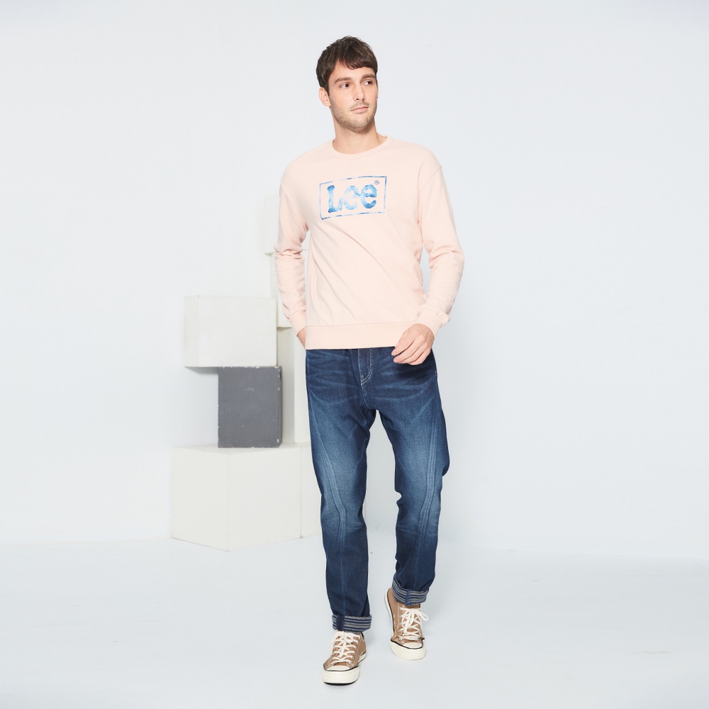 Lee 長框LOGO衛衣 大學T 男 LL200338 白080 藍052 粉橘016