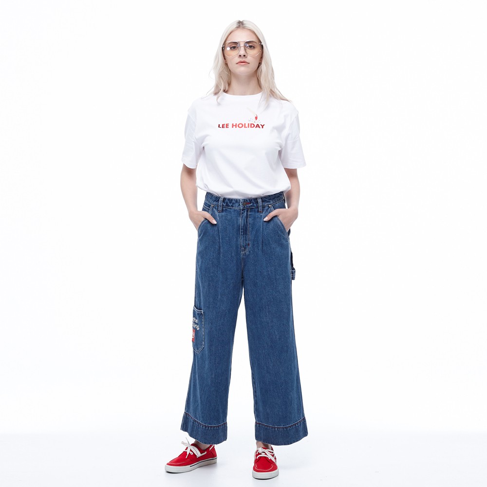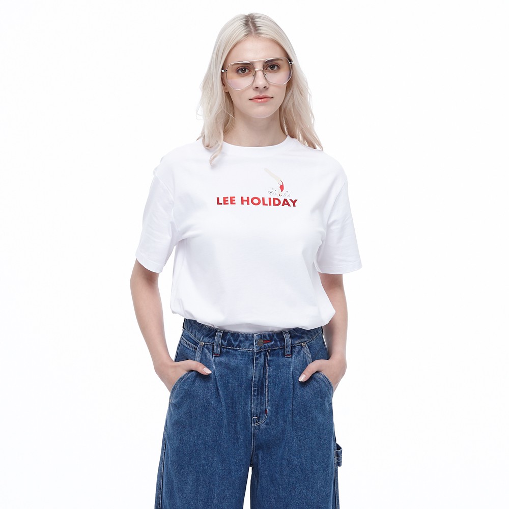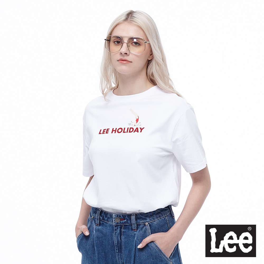 Lee 紅色Holiday文字印刷短袖T恤 女 白 男朋友版型 Modern LL200190K14