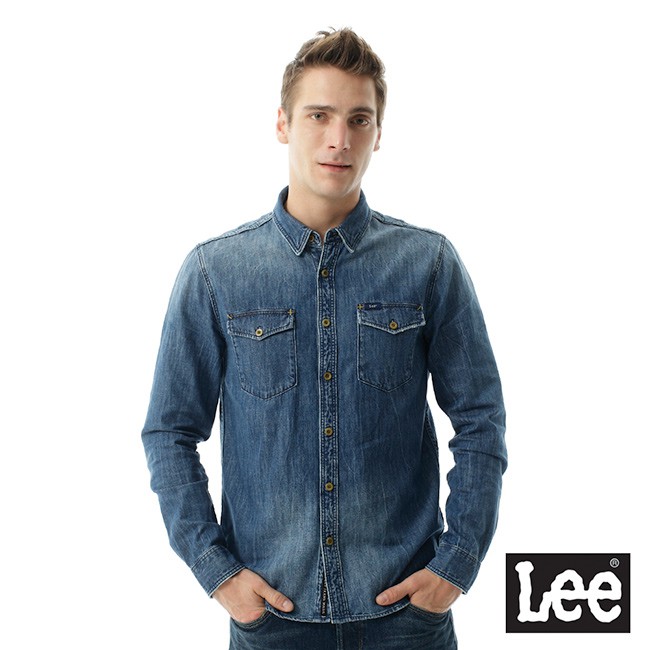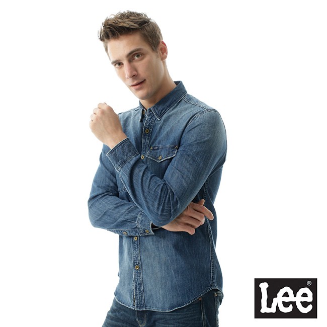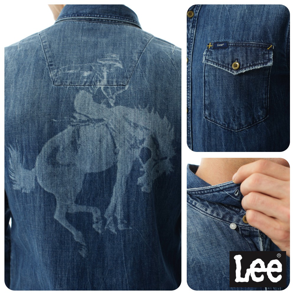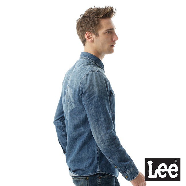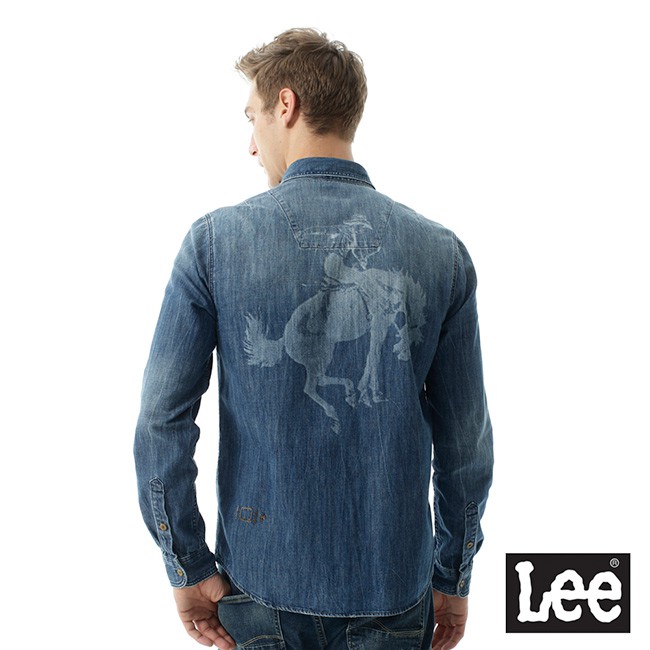 Lee 牛仔帥氣圖騰長袖襯衫 男 101+ 藍LL1701134JT