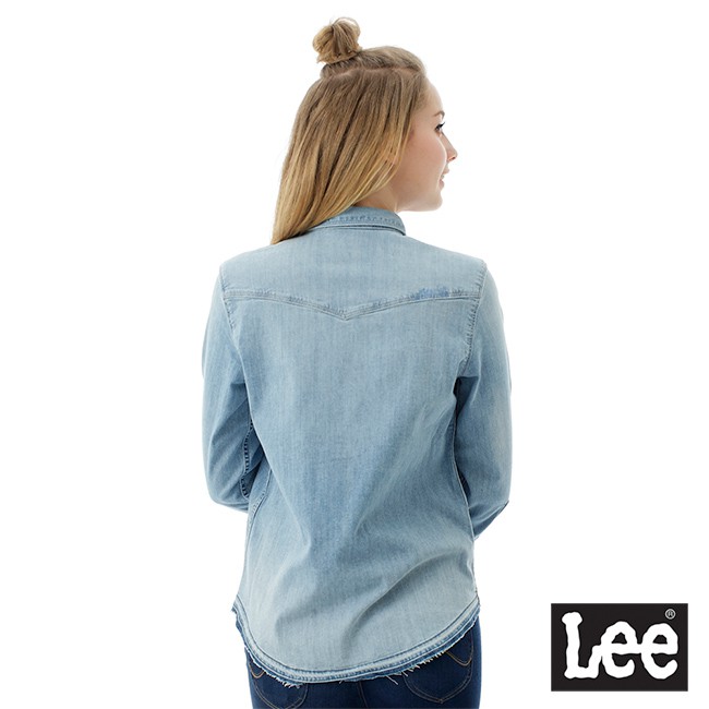 Lee 長袖牛仔襯衫 女 藍 小破壞 Modern 1700853UN