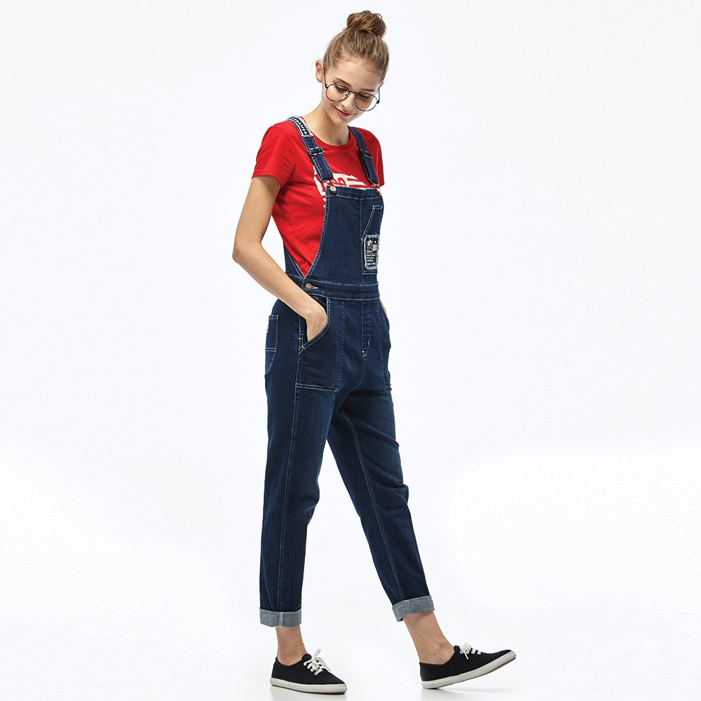 Lee 牛仔吊帶長褲 女 深藍 Modern LL1801118BM
