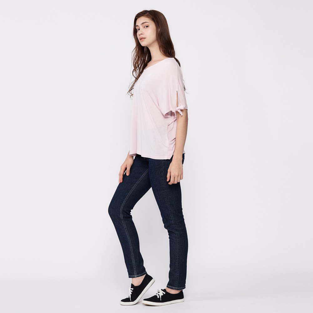 Lee 袖口綁袋LOGO寬版短袖T恤 女 粉紅 Modern LL2000079RW