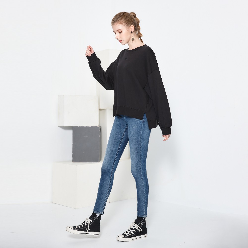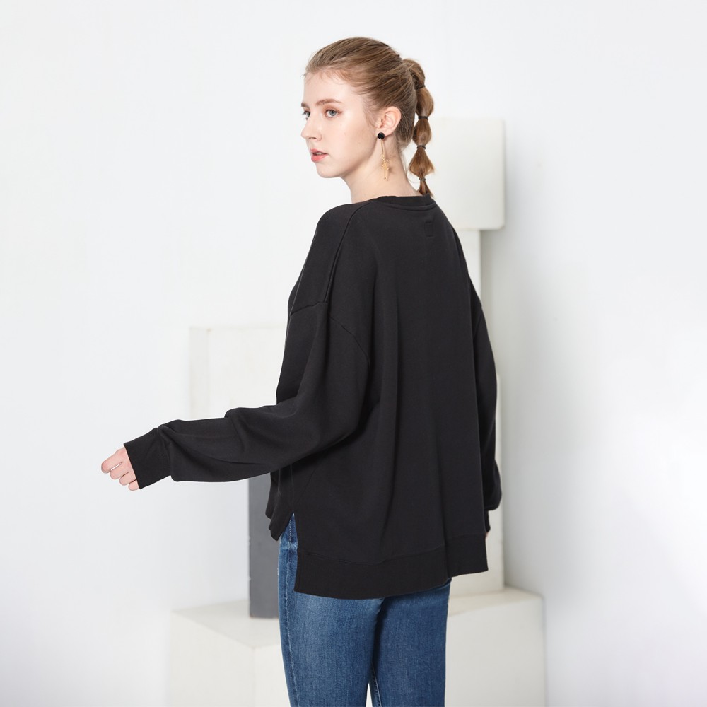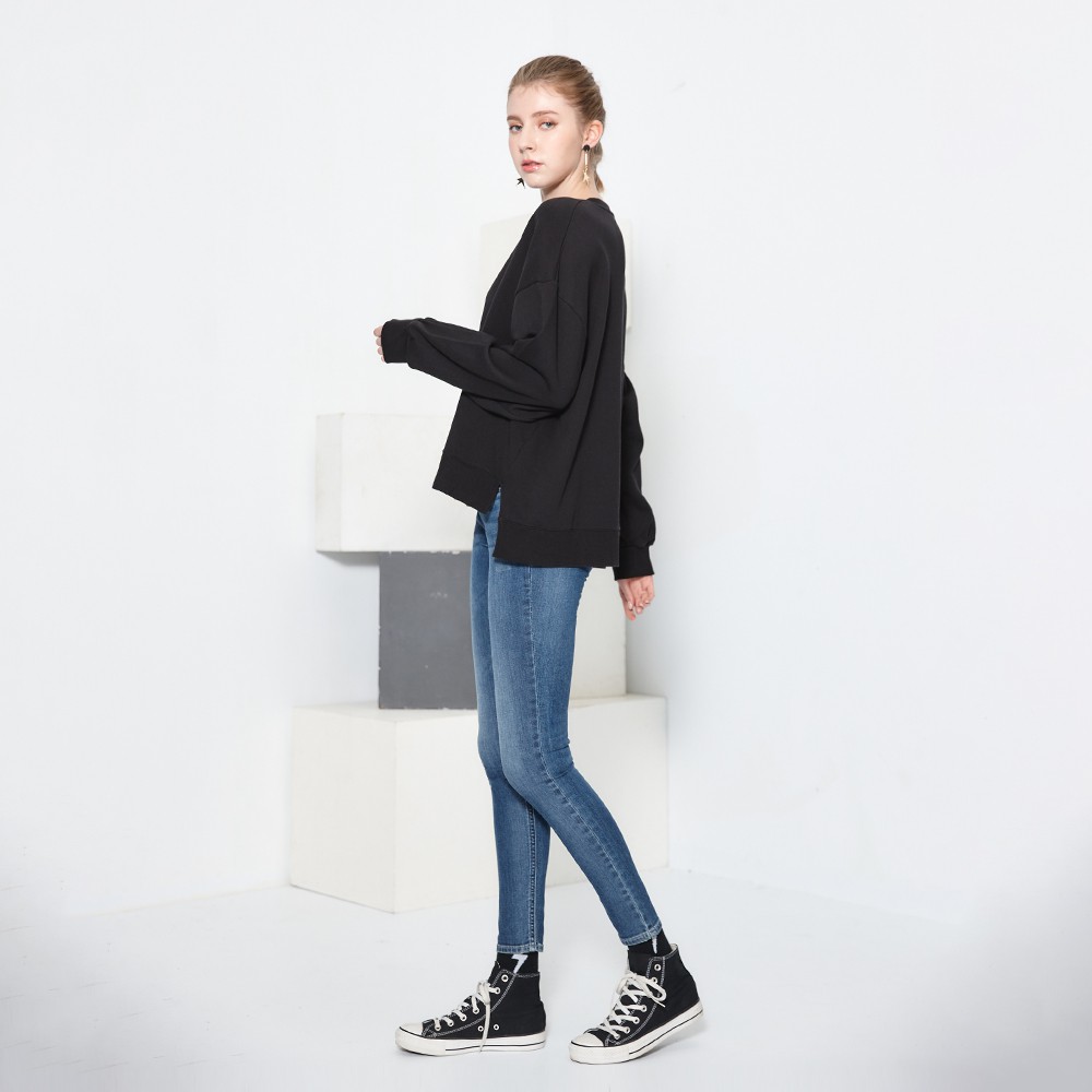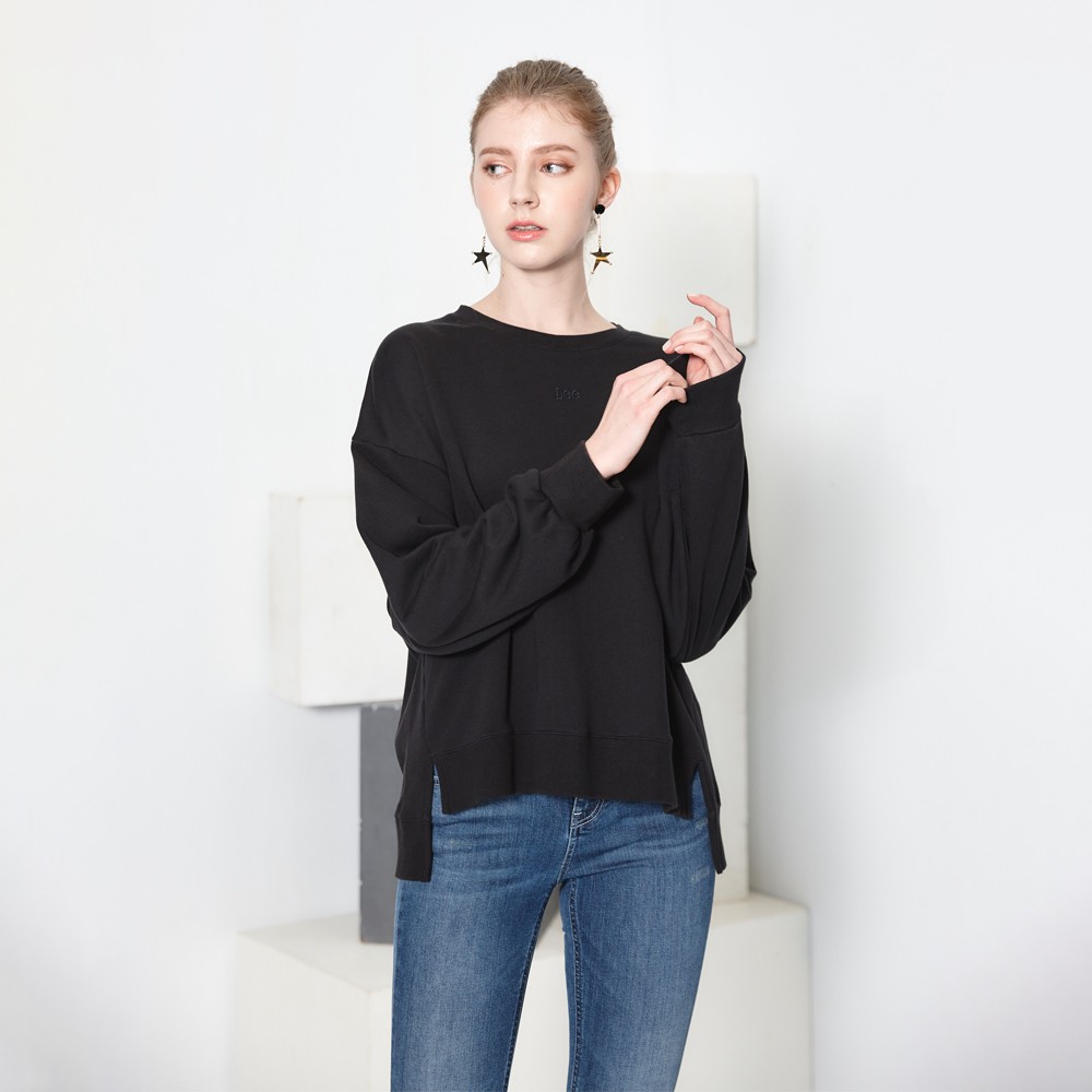 Lee 小LOGO前短後長長袖T恤 女 黑 Modern LL200320K11