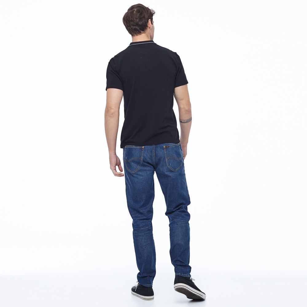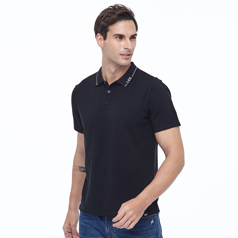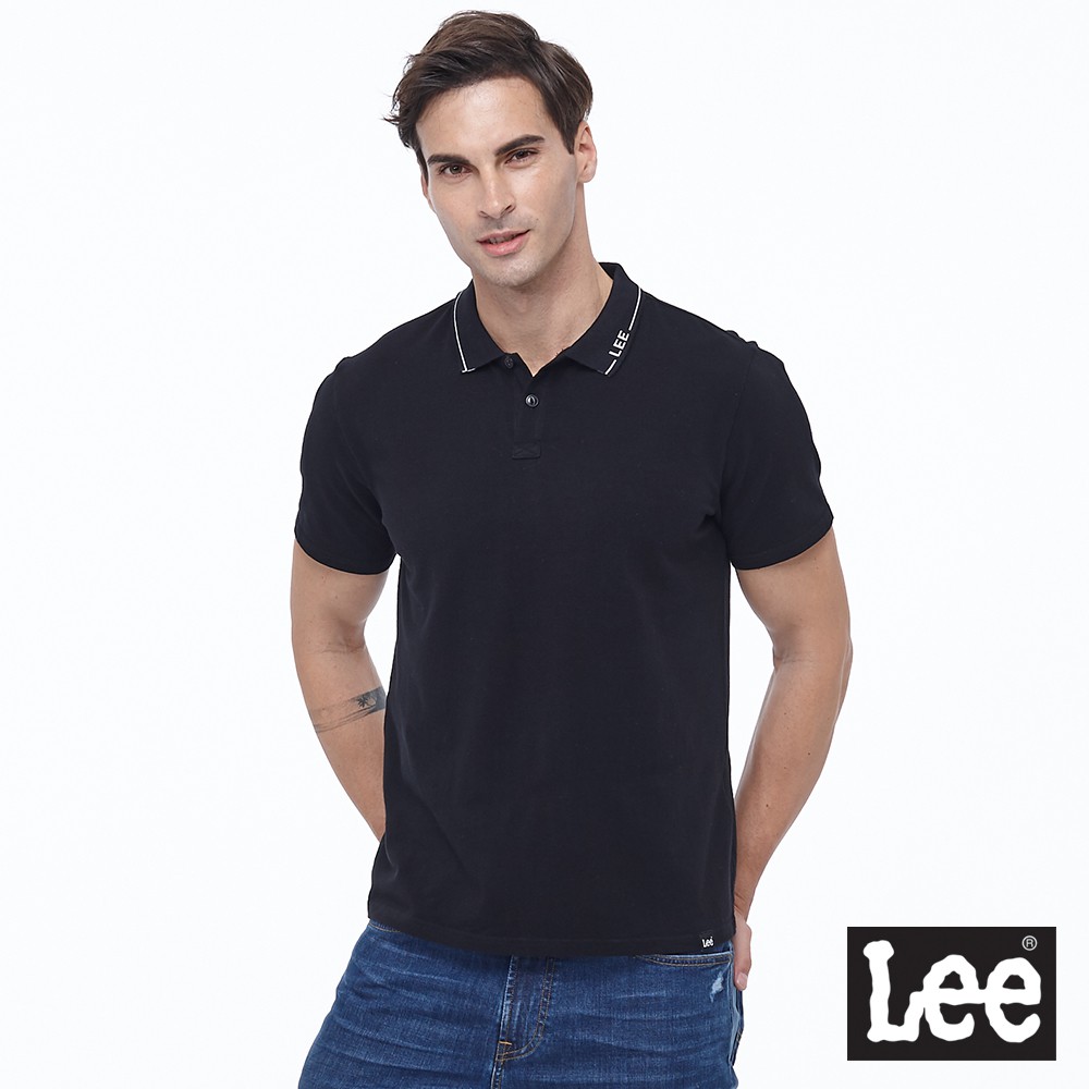 Lee 領口Logo素色短袖POLO衫 男 黑 Modern LL200121K11