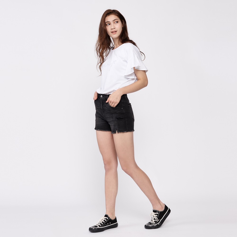 Lee 寬鬆開岔高腰牛仔短褲 女 灰黑 Modern LL19010511K