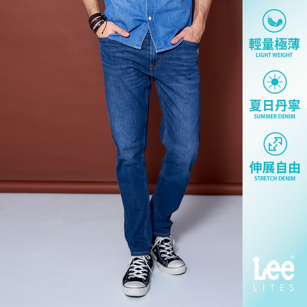 Lee 731 涼感 彈性中腰舒適小直筒牛仔褲 男 中藍 LL20004667G