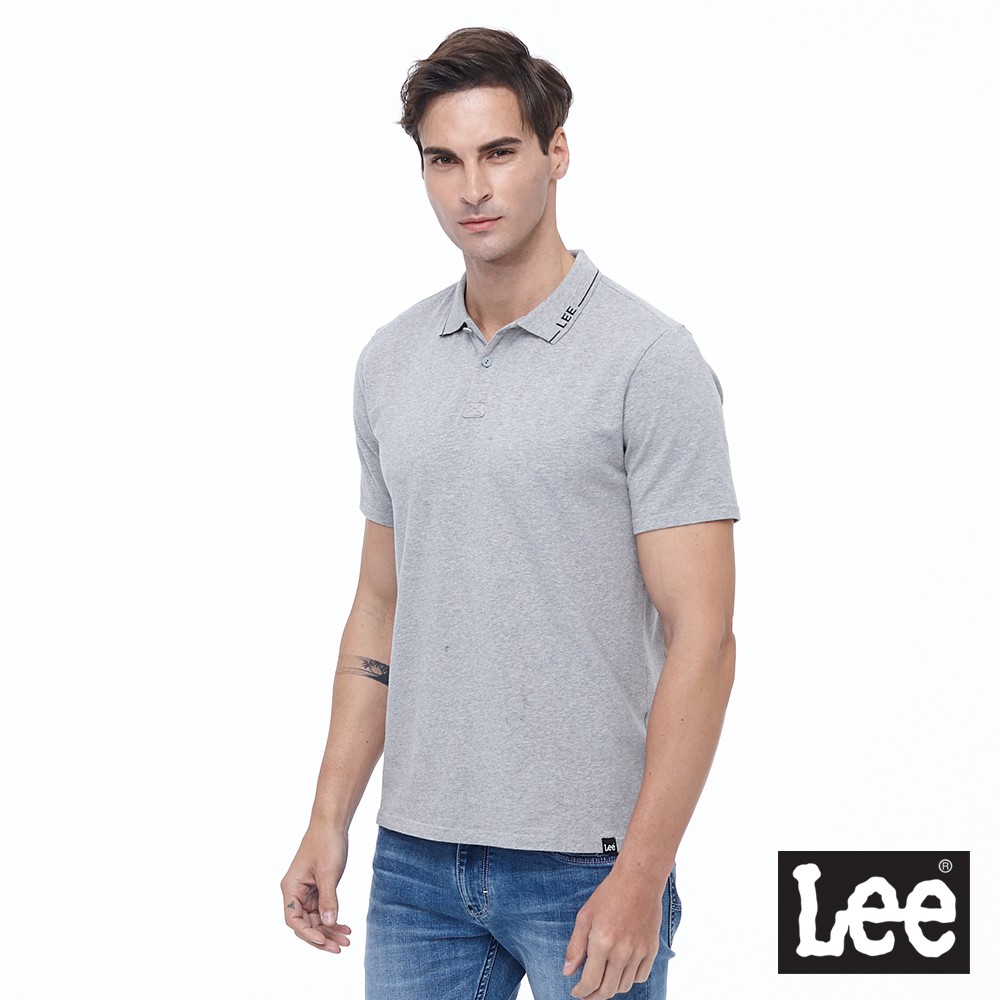 Lee 領口LOGO素色短袖polo衫 男 灰 Modern LL2001219CG
