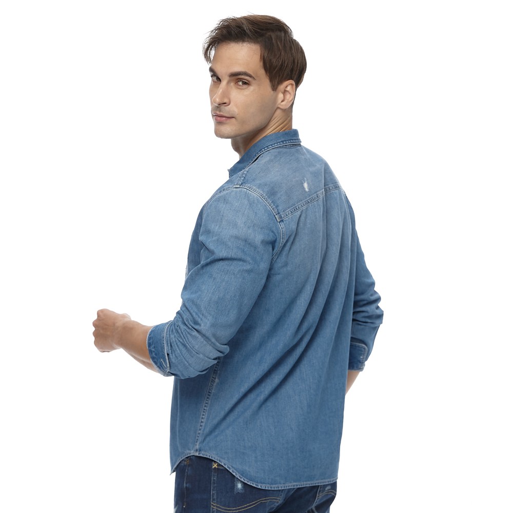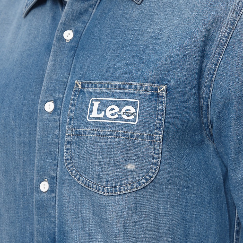 Lee 前口袋印花長袖牛仔襯衫 男 中淺藍 Modern LL19027448E
