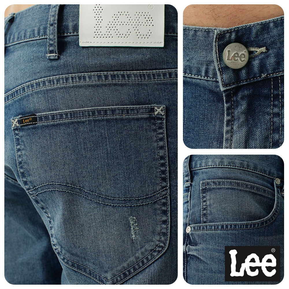 Lee 735 涼感 彈性中腰舒適小直筒牛仔褲 男 中深藍 LL1700144MB