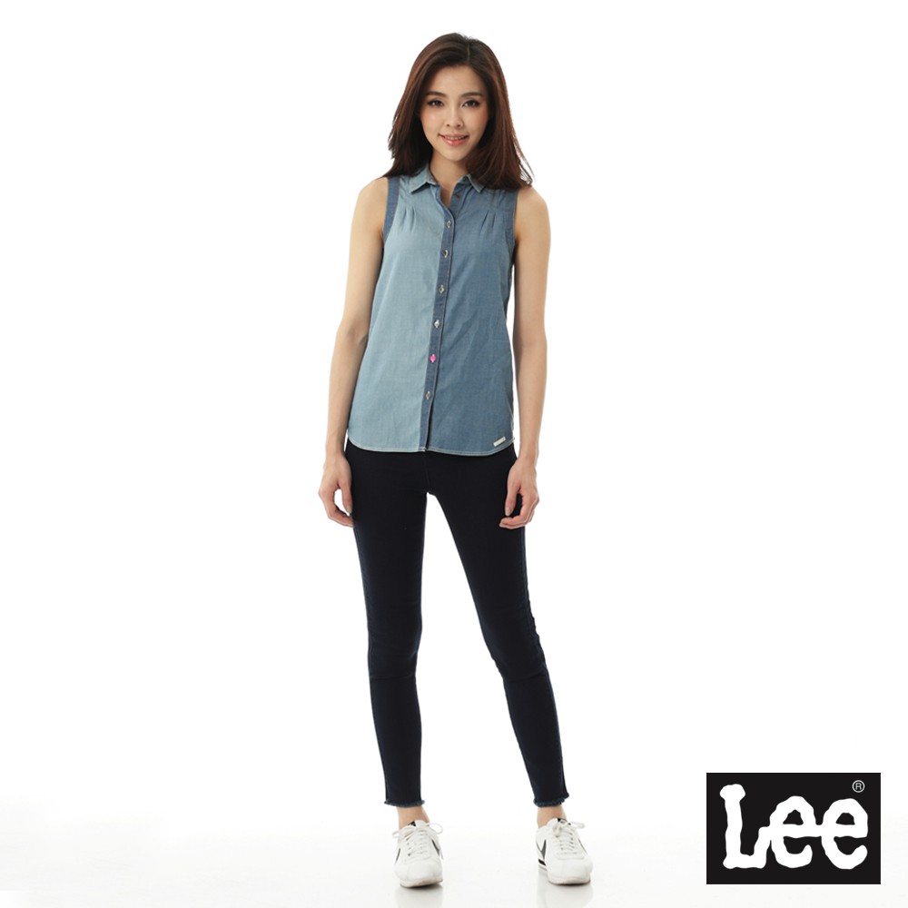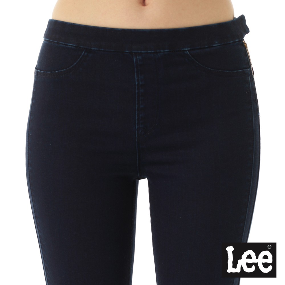 Lee 417 高腰緊身窄管牛仔褲 女 深藍 褲腳抽鬚 Modern 150245AE9