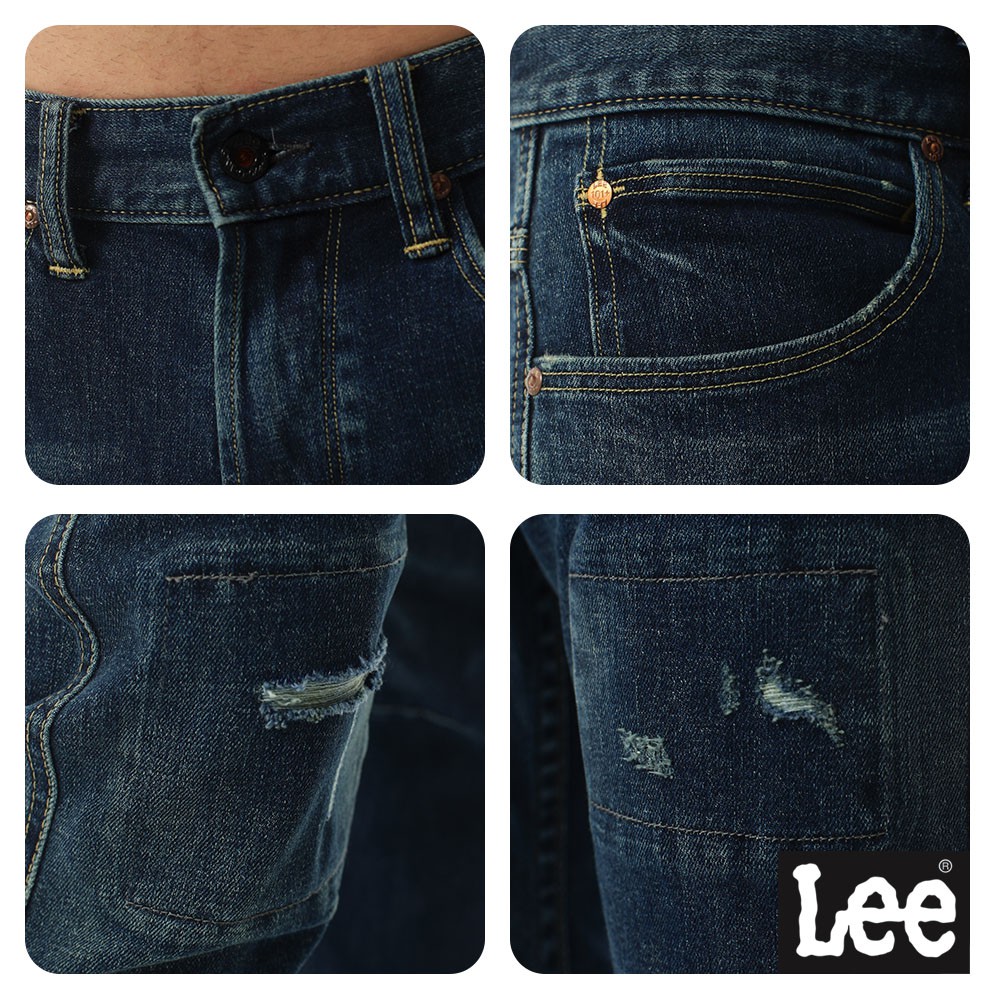 Lee 707 中腰標準合身小直筒牛仔褲 男 刷破 101+ LL1601732NN