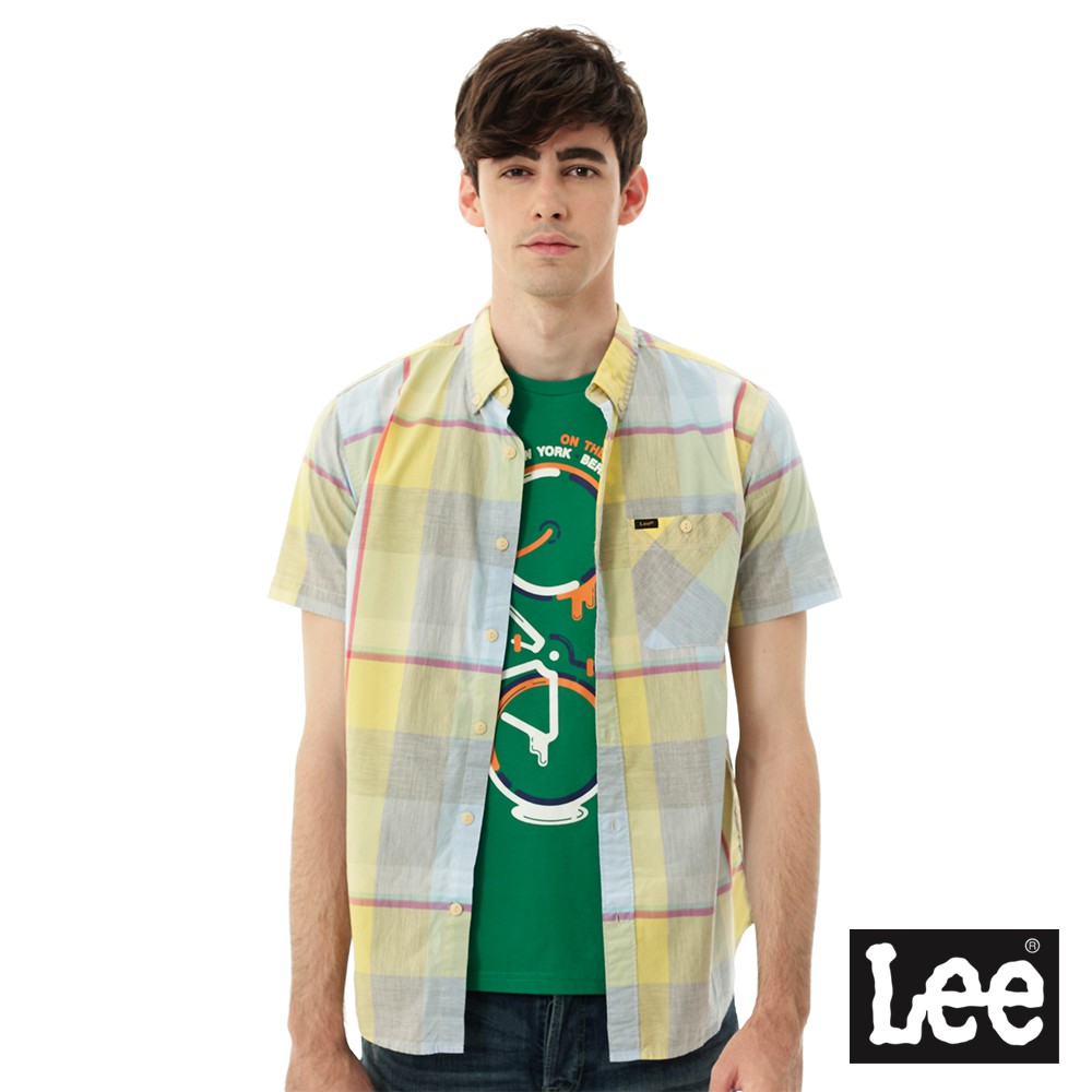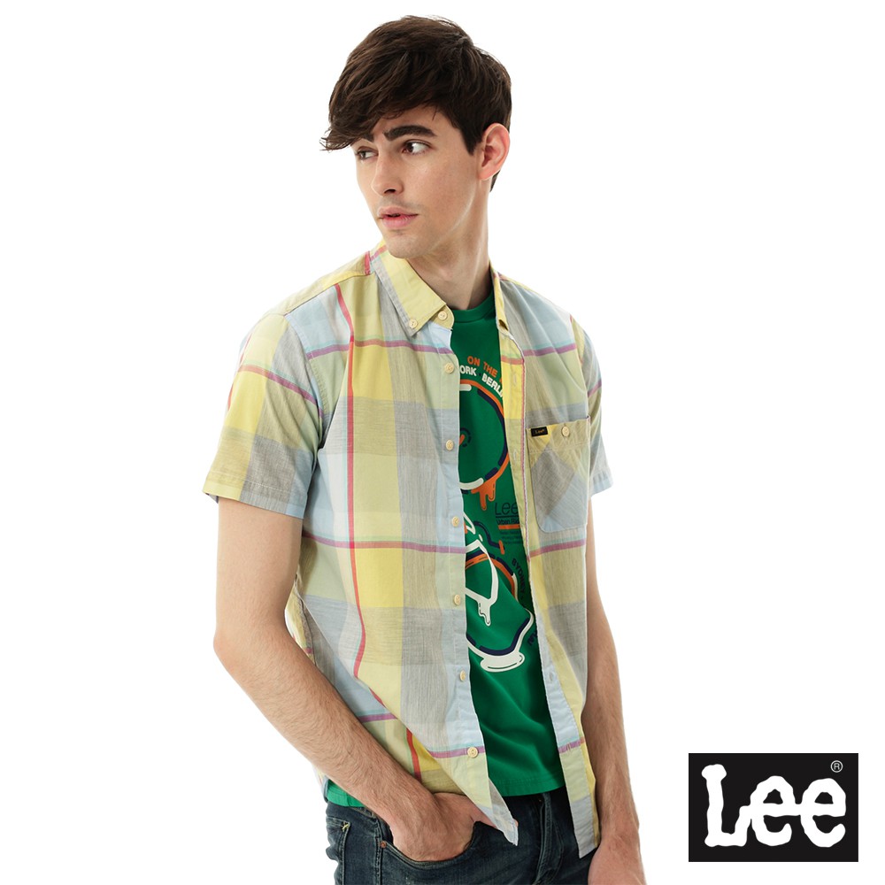 Lee 格紋短袖襯衫 男 黃 Modern 150128S93