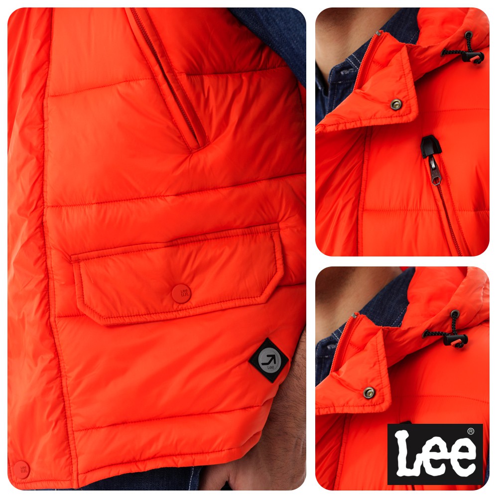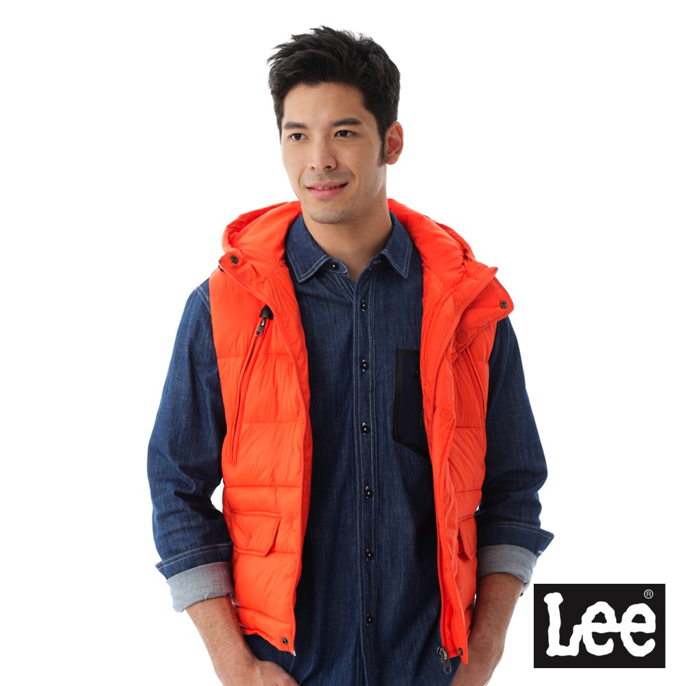 Lee HEAT連帽舖棉背心 男 橘 Urban Riders 1602612MV