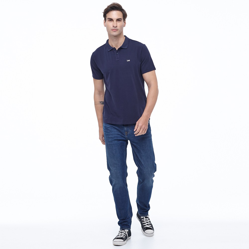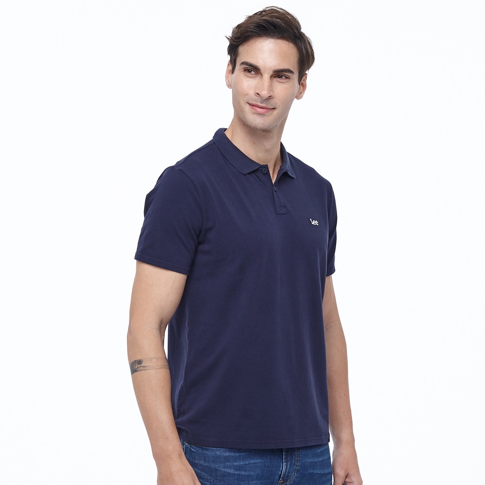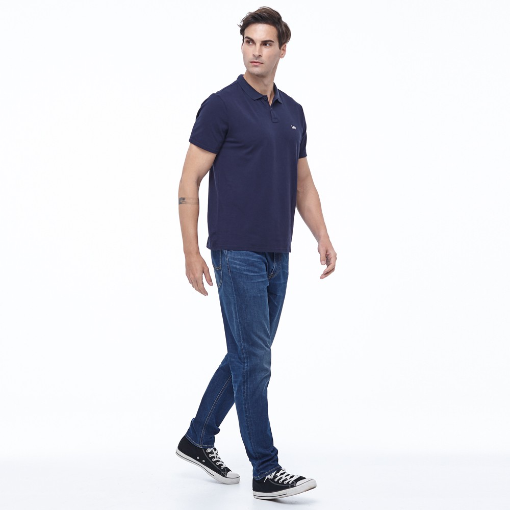 Lee 白色小LOGO短袖Polo衫 男 藍 Modern LL20020766T
