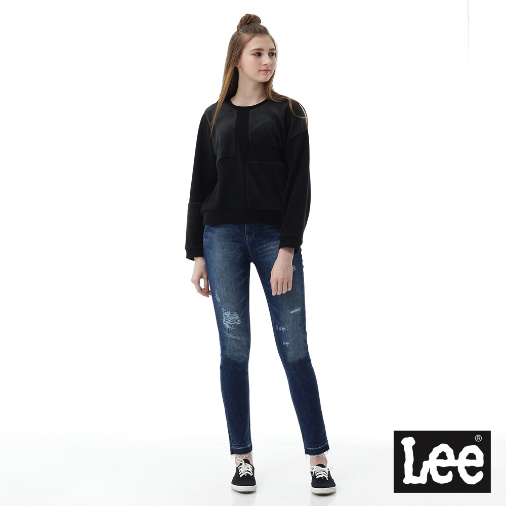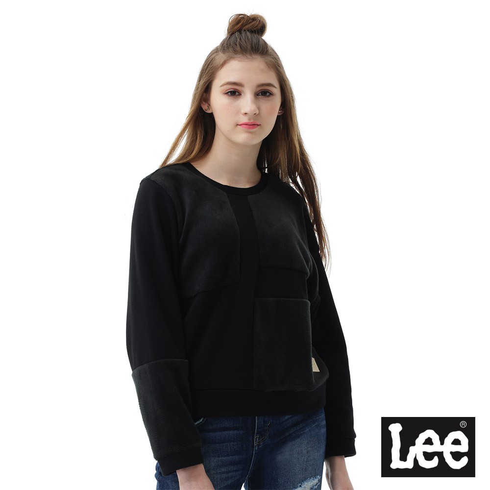 Lee 絨布拼接衛衣 大學T 女 Modern 黑LL170378K11