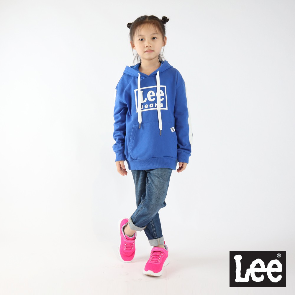 Lee 方框LOGO長袖連帽T恤 藍 男女童裝 Modern LL19034261R