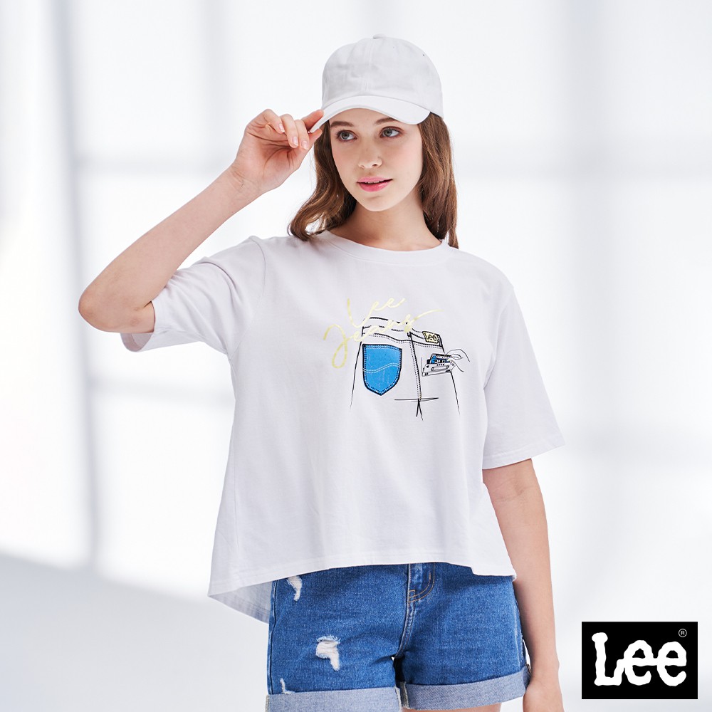 Lee 牛仔後口袋印花寬版短袖T恤 女 Modern 經典白LL210171K14