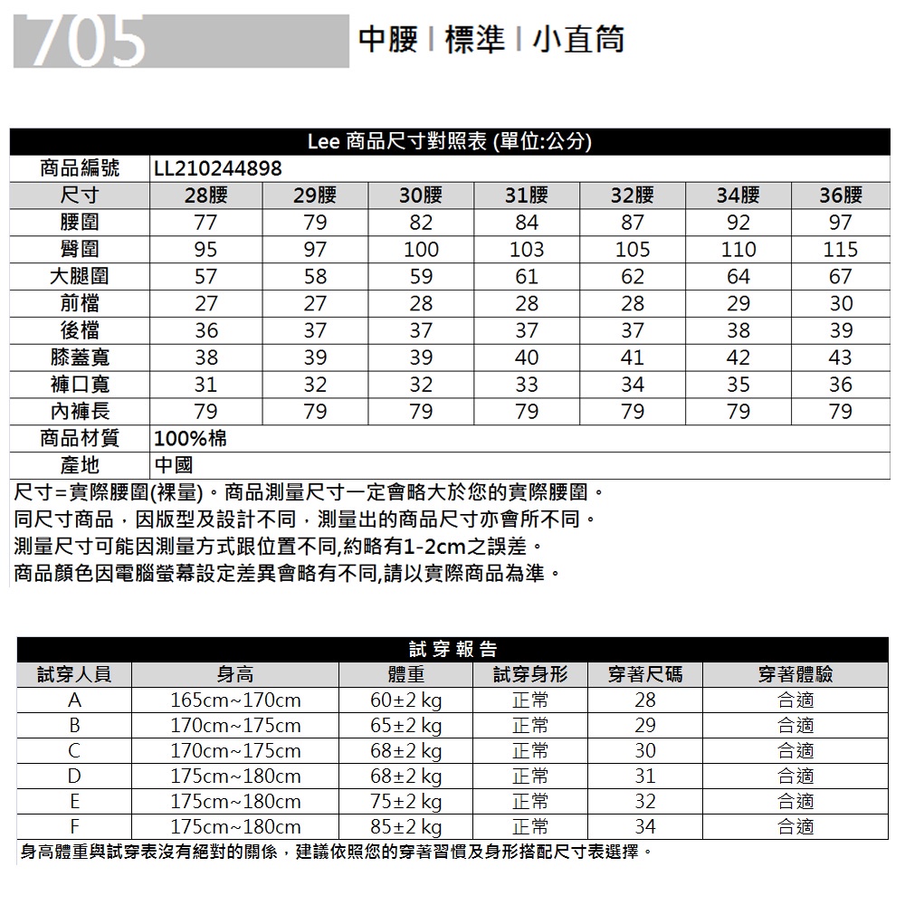 Lee 705 中腰標準小直筒牛仔褲 男 Modern LL210244898