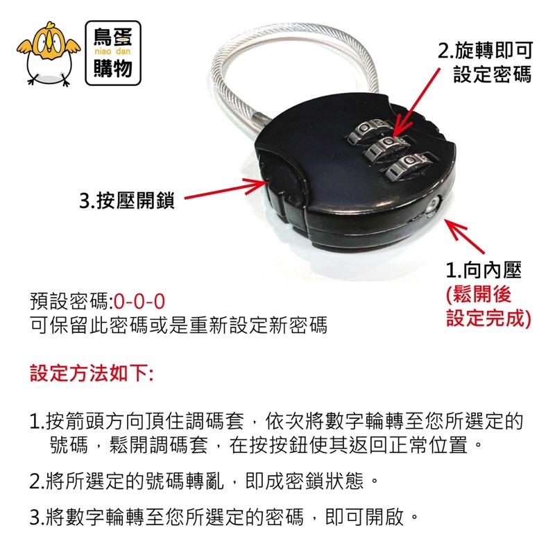 【現貨】鋼繩式三碼密碼鎖|掛鎖 數字鎖 行李鎖 可調密碼鎖