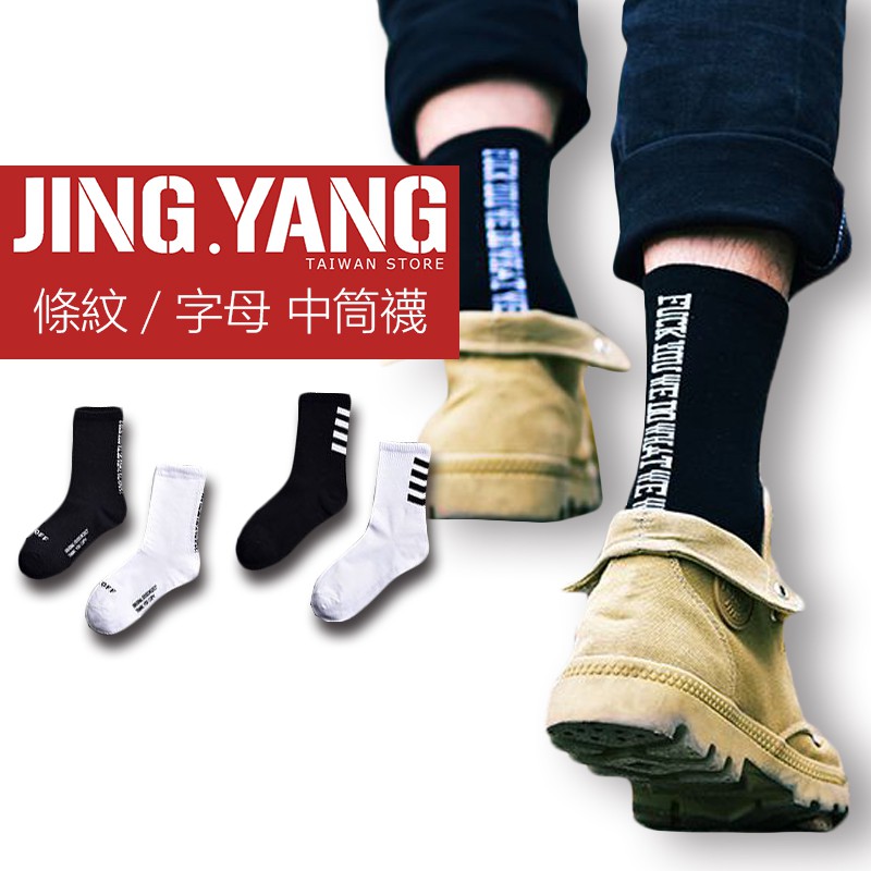 條紋/字母 中筒襪《J.Y》潮流必備單品 襪子 長襪 中筒襪 男女皆可穿 兩款兩色可選【MS007】