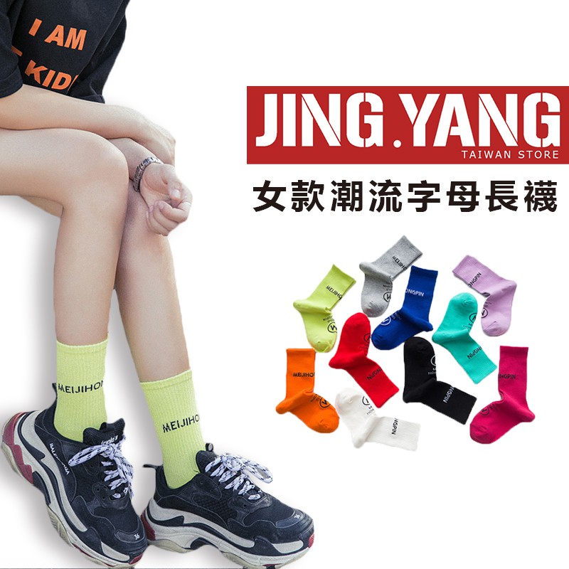 男女款潮流字母長襪《J.Y》中筒襪 長襪 潮流單品 流行 女襪 潮流襪 多色可選