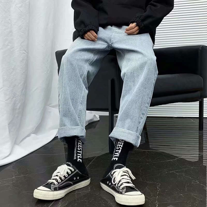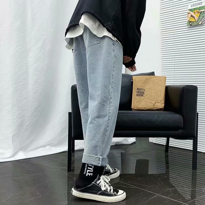 出清 直筒牛仔褲《J.Y》鬆緊帶 綁繩 縮口褲 牛仔褲 長褲 休閒長褲 工作褲 潮流 寬鬆 闊腿褲 復古 刷舊 兩色可選