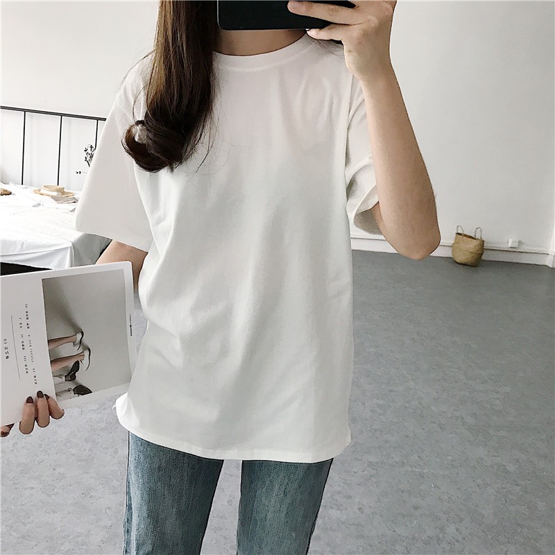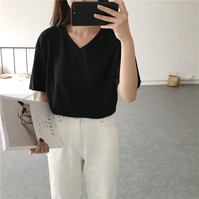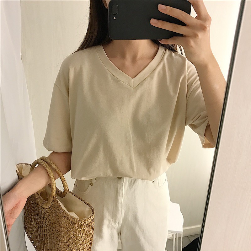 棉質圓領/V領短袖上衣《J.Y》 短袖t恤 女裝 顯瘦上衣 衣服 寬鬆上衣 短袖 韓版復古色系