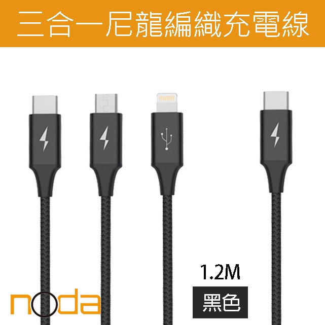 noda Type-C轉Lightning+MicroUSB+TypeC三合一尼龍編織