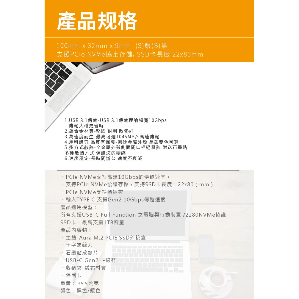 noda 原廠 Aura M.2 NVMe PCIE SSD外接盒-銀色