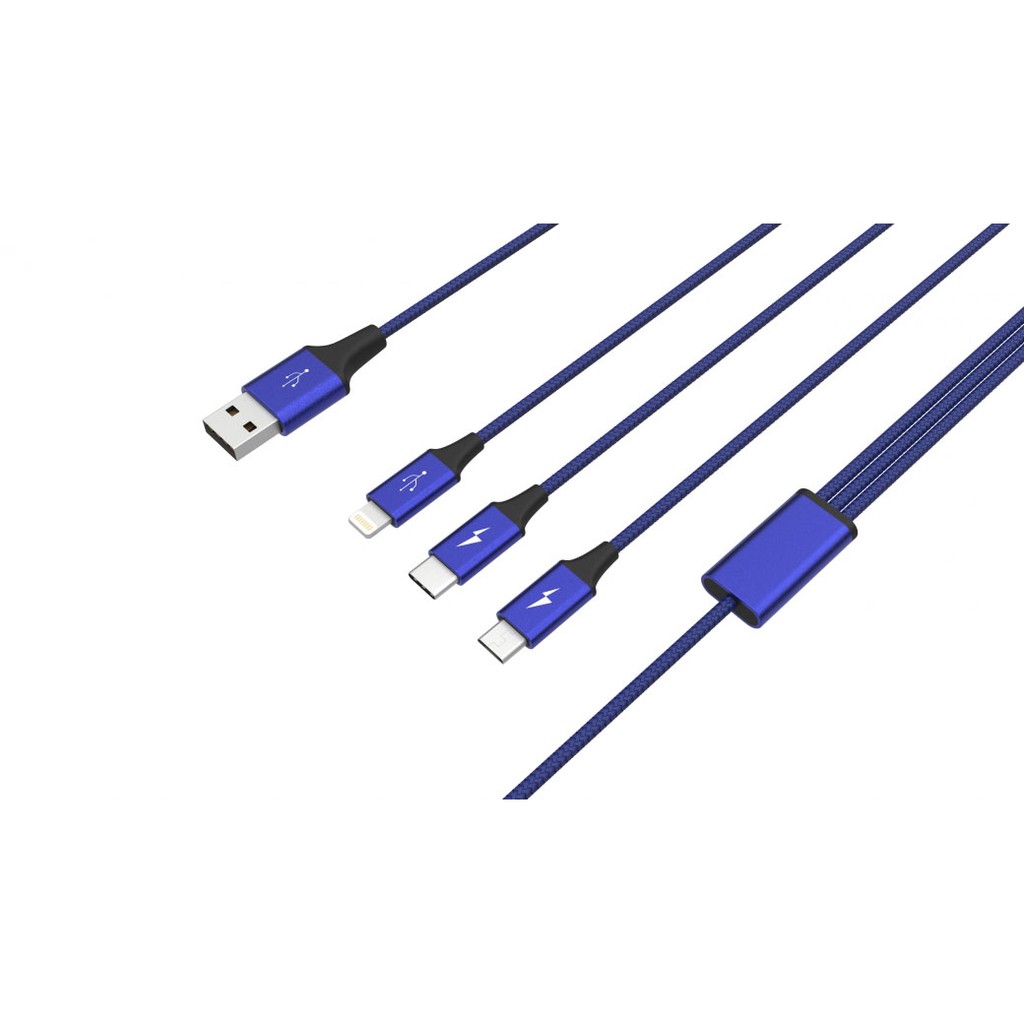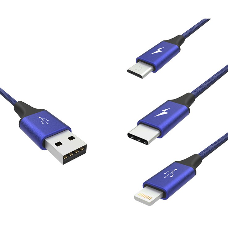【Noda's Design Taiwan】三合一尼龍編織充電線(1.2M) 藍色