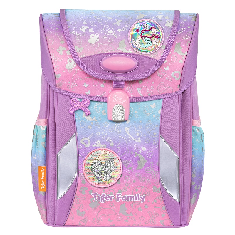 Tiger Family 學院風 護童安全燈 超輕量護脊書包 Pro 2 粉紫樂園 H4207(TGJY-026A)