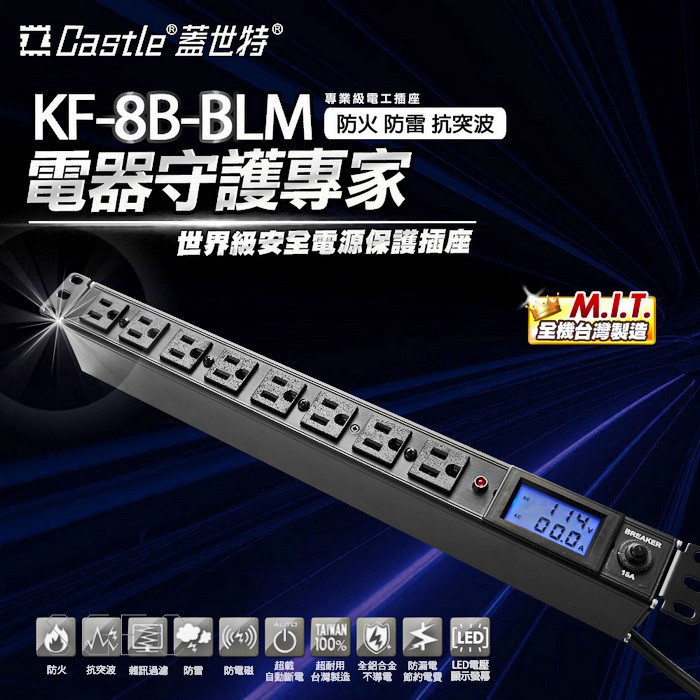Castle 蓋世特 KF-8B-BLM 20A- 1.8M機櫃用 插座延長線 鋁合金防突波 線徑3.5mm 電源分配
