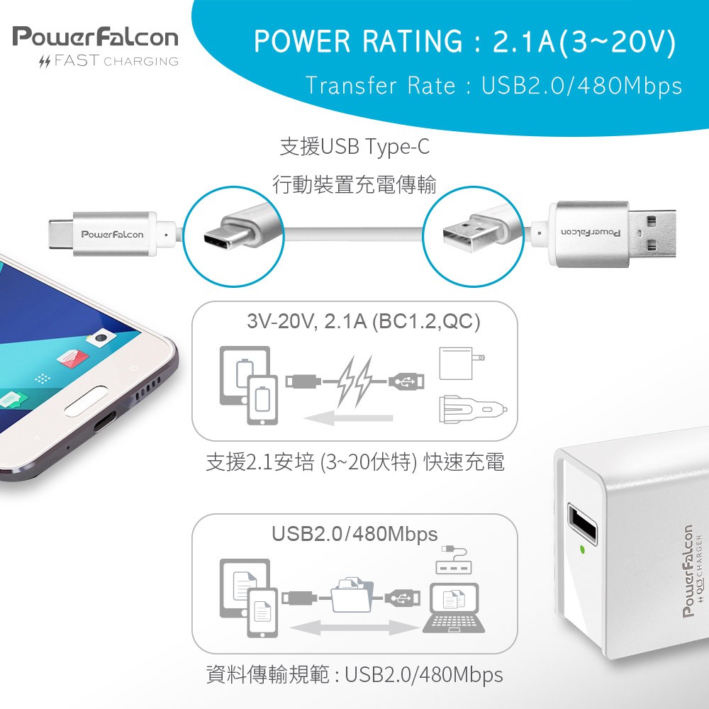 PowerFalcon Type-C to USB-A QC3 快充線 1米 資料傳輸充電線(PF01)