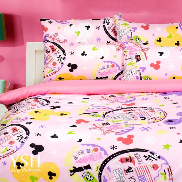 迪士尼 米奇 旅行 粉 床包 卡通 台灣製