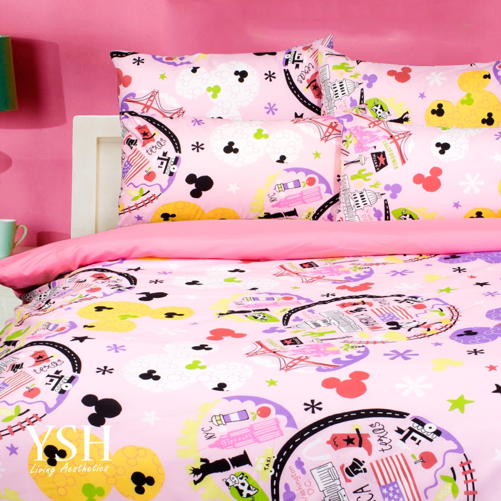 迪士尼 米奇 旅行 粉 卡通冬夏兩用被 台灣製