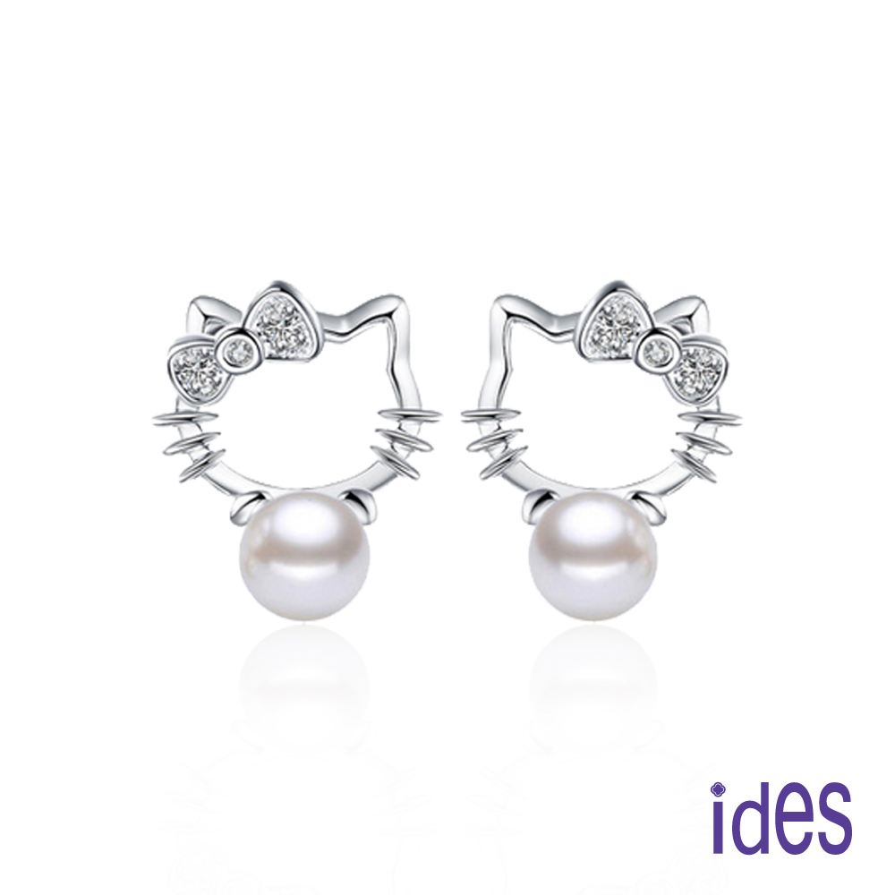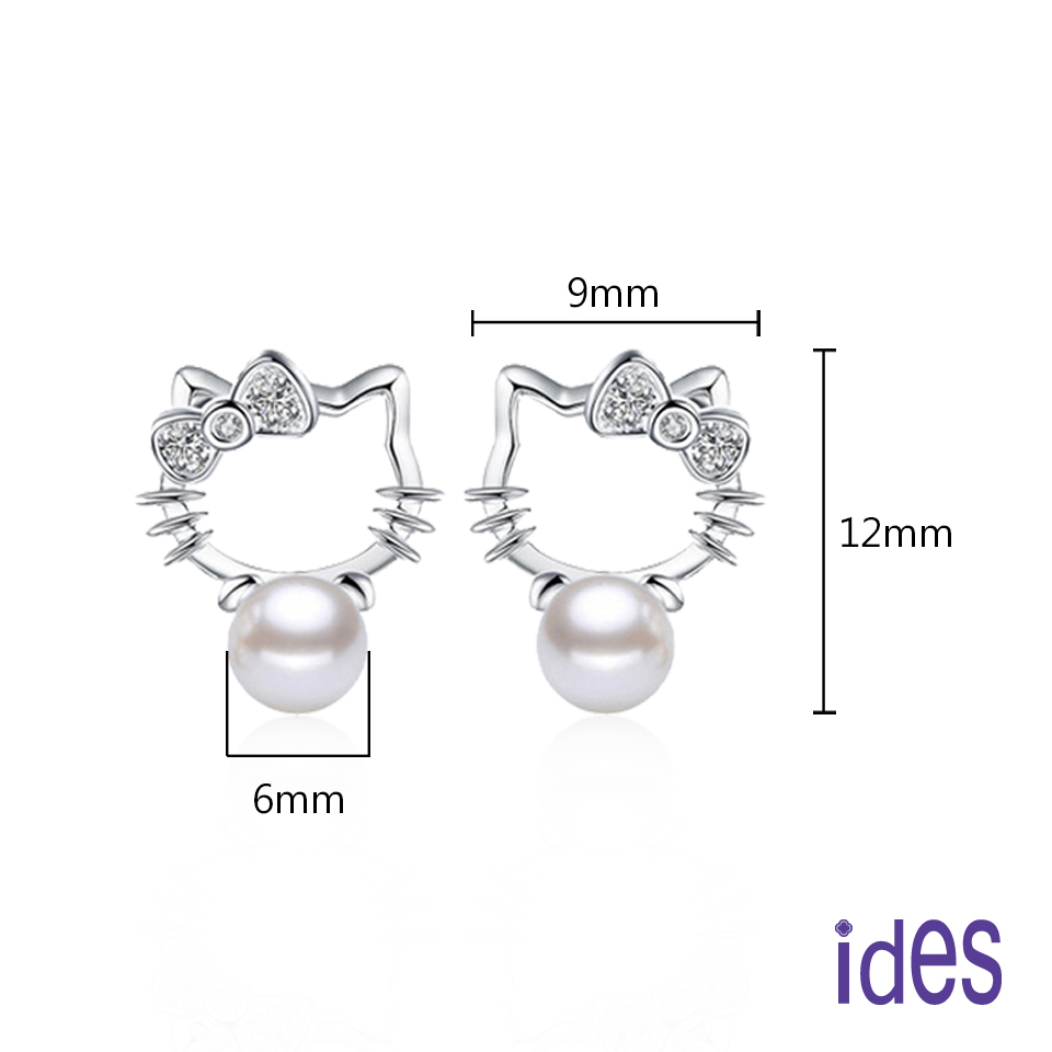 ides愛蒂思鑽石 時尚淡水貝珠耳環/淘氣貓/白色6mm