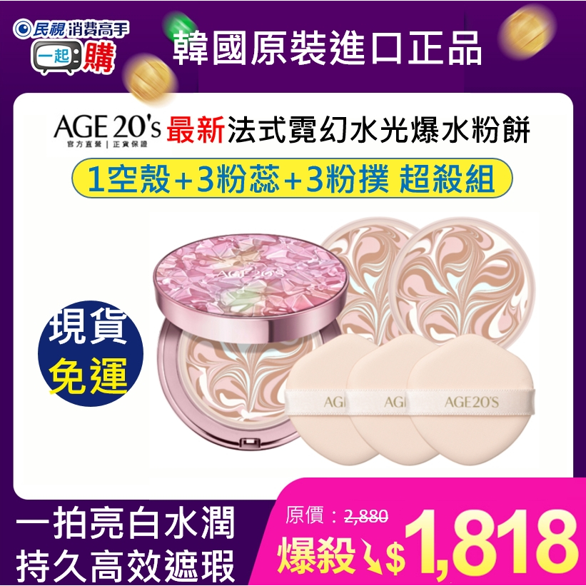 韓國原廠正品【AGE20'S】法式霓幻水光爆水粉餅超殺組1殼3蕊3粉撲 SPF50+/PA++++ (BE-21亮白色)