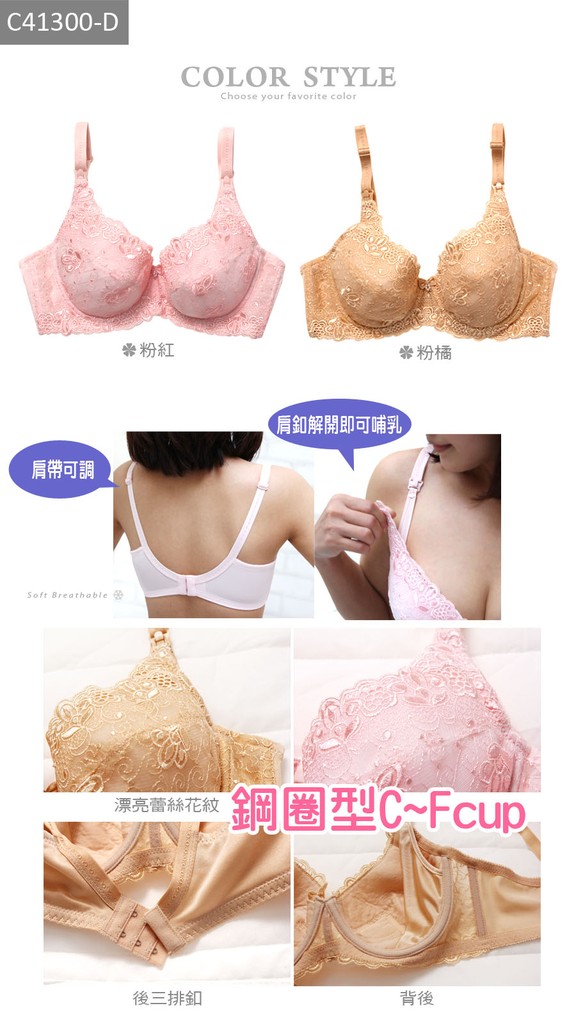 漂亮蕾絲花邊*鋼圈調整型哺乳內衣-【41300-D】 貝比幸福小舖