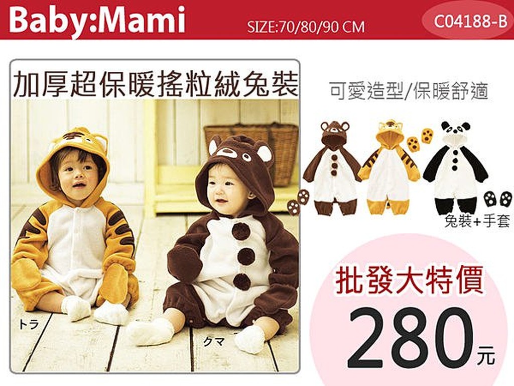 日單加厚超保暖搖粒絨可愛動物造型連身衣+手套 【04188-B】貝比幸福小舖