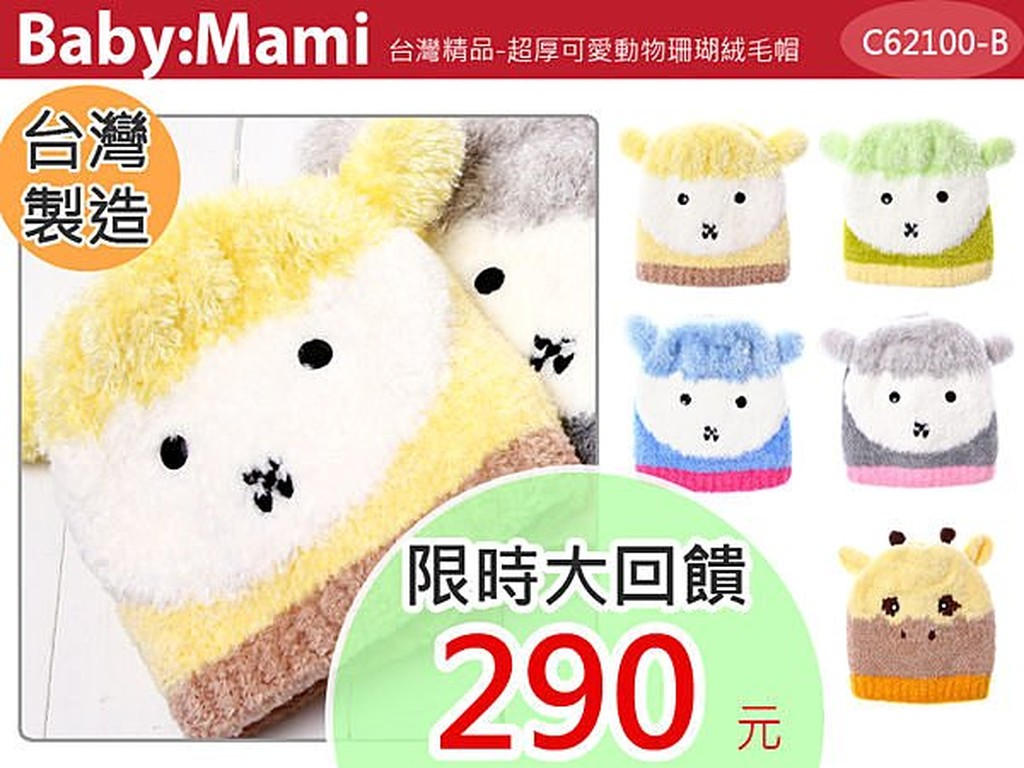 無敵可愛/超厚雙層極柔珊瑚絨動物帽/毛帽 【62100-B】貝比幸福小舖