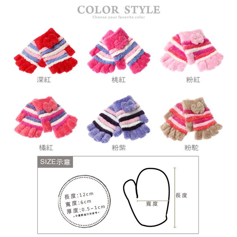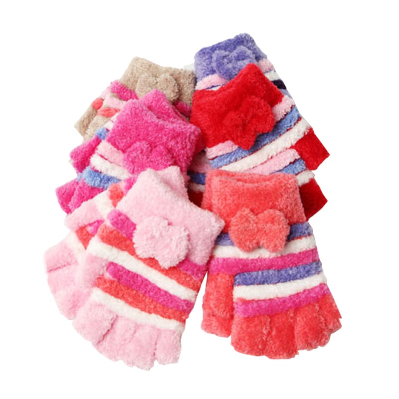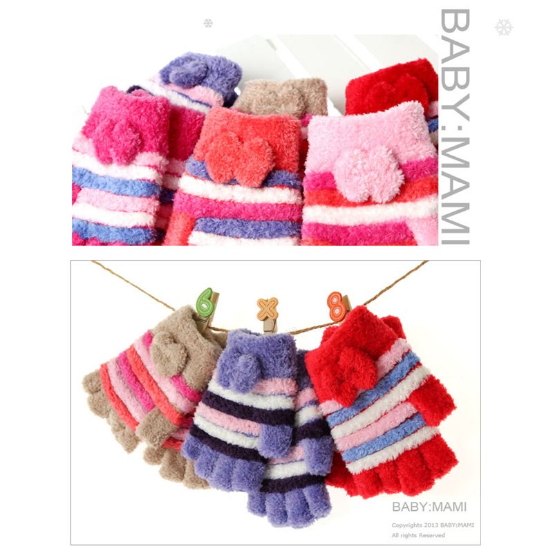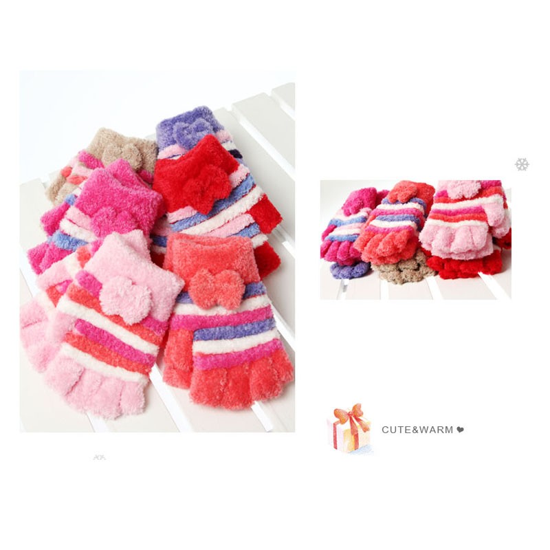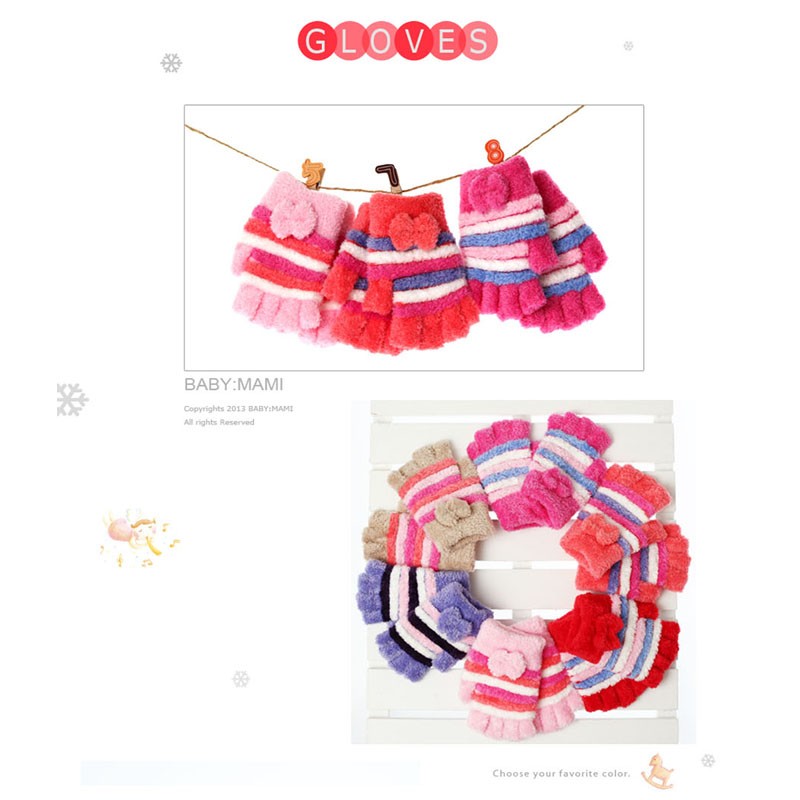 好可愛*冬天溫暖小蝴蝶結橫條露指毛手套-【61000-03】貝比幸福小舖