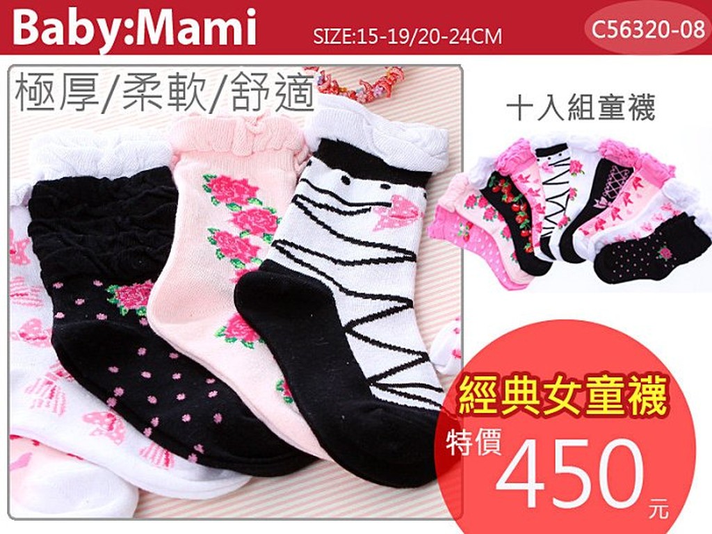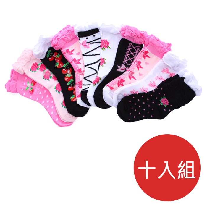 日單經典優雅花邊女童襪/棉襪 十入組【56320-08】貝比幸福小舖